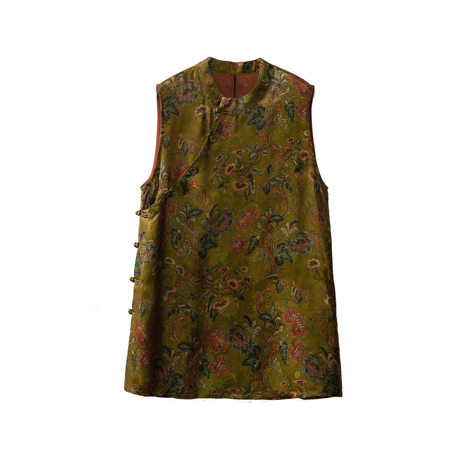 为您提供商品奥黛上衣 一丝牵100%桑蚕丝老钱风红云纱花萝女国风盘扣真丝中长款的详细介绍,