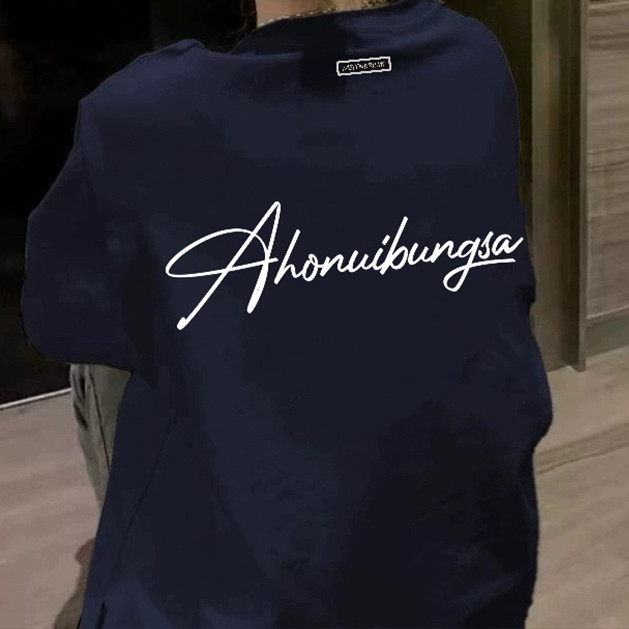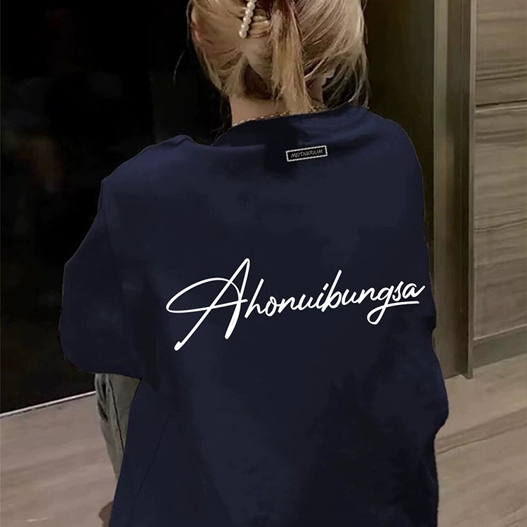 LA短袖 宽松百搭印花上衣白色11 T恤男女情侣落肩袖