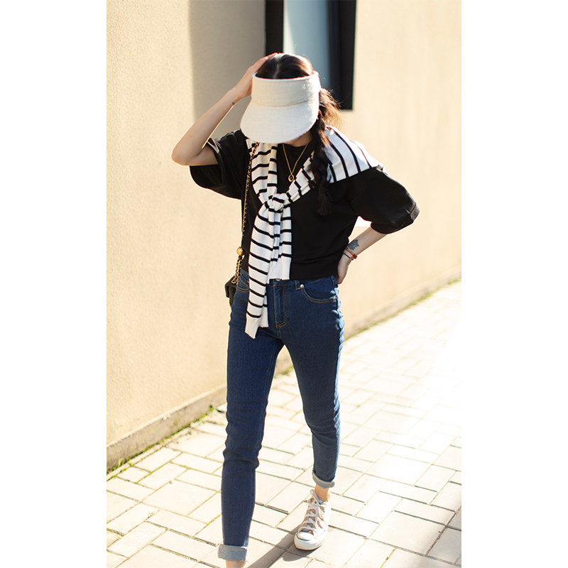 可穿修身 大象和长颈鹿 新型针织牛仔 四季 208106 弹性毛边小脚裤由