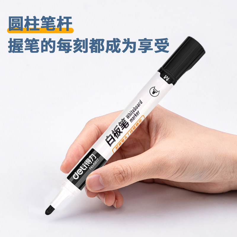 粗大头 得力6817可擦白板笔教师用水性黑色儿童安全彩色红蓝黑板办公用品文具批发画板写字板易擦除