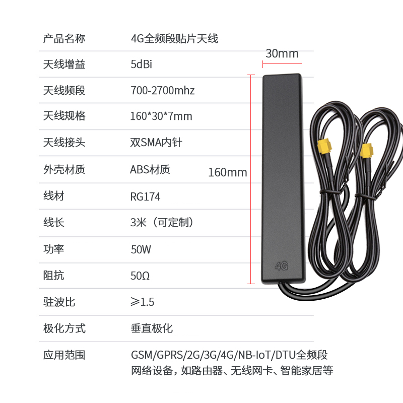 为您提供商品全网通GSM LTE贴片天线3G 4G路由器网卡天线双SMA内针接口的详细介绍,