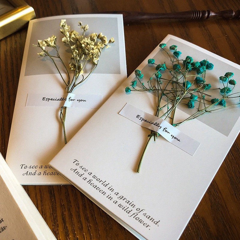 文艺小清新真干花贺卡生日卡片教师节中秋节日礼物情人节祝福卡