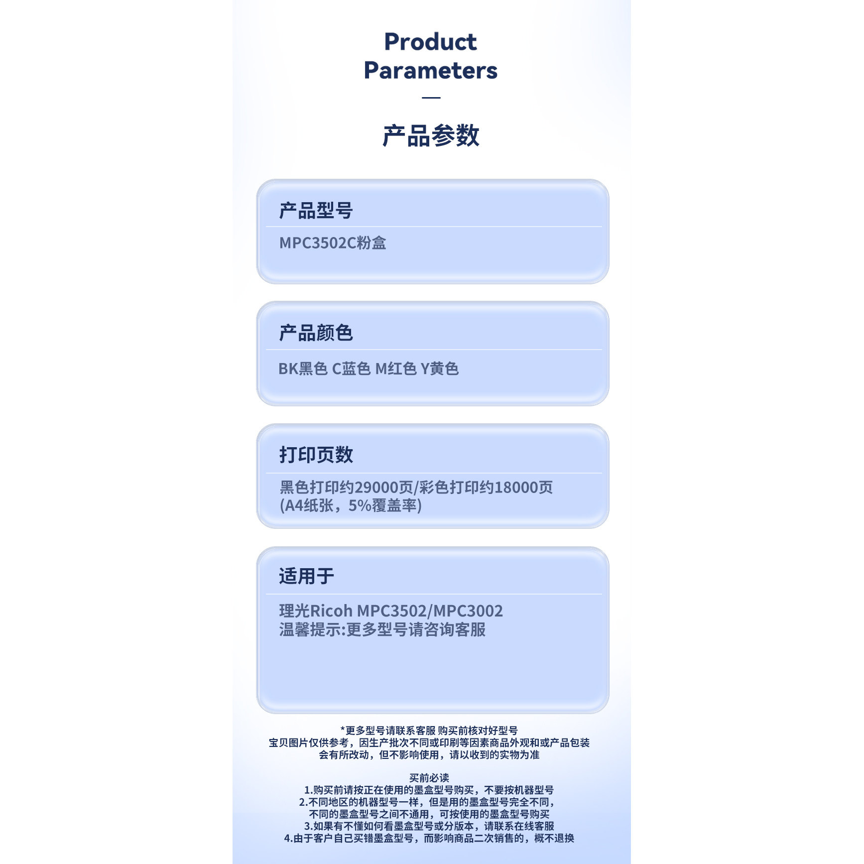 为您提供商品C3501 雄彩适用于理光Aficio C3001粉盒C3002墨粉盒C3030 碳粉筒高容 C3502彩色复印机打印机粉盒墨盒粉仓的详细介绍,