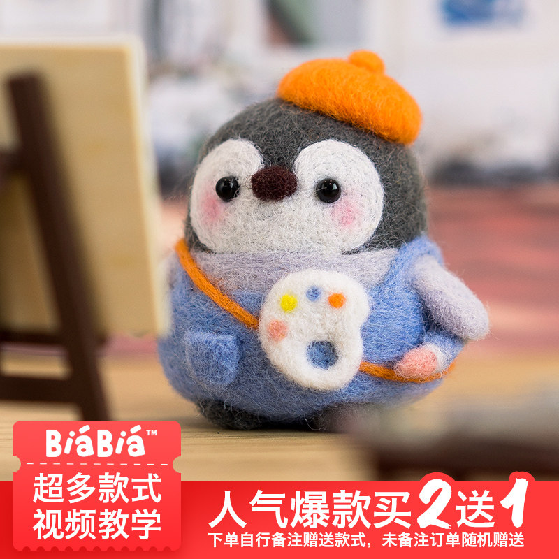 BIABIA羊毛毡戳戳乐手工diy材料包情侣自制生日礼物企鹅玩偶挂件由
