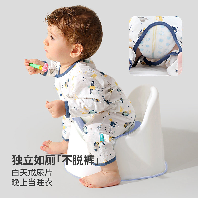 婴儿开裆连体衣夏季 宝宝衣服长袖 睡衣纯棉a类男女婴幼儿春装 薄款由