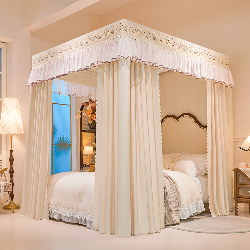 保暖床幔女 加厚遮光床帘家用卧室落地防尘床幔1公主风蚊帐一体式