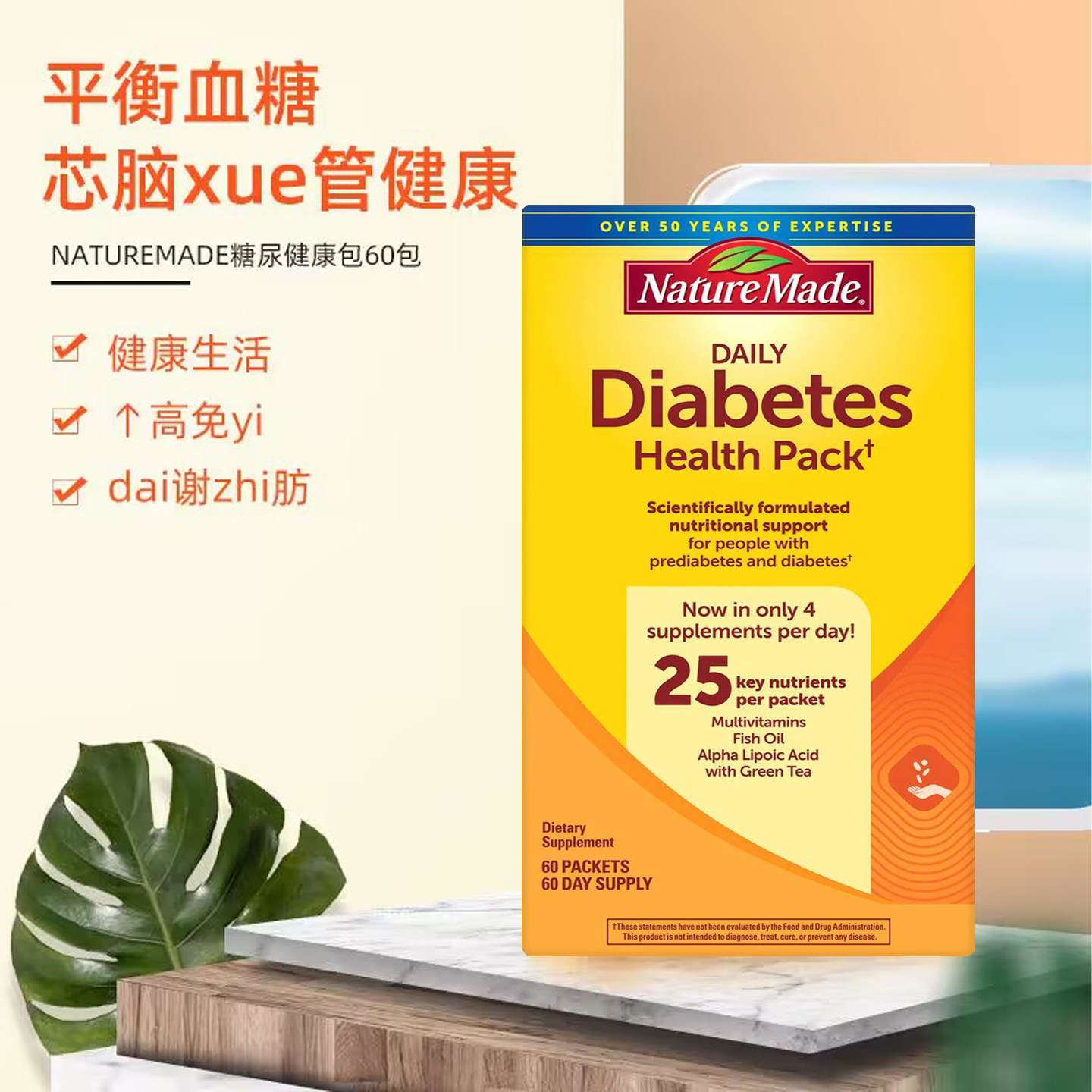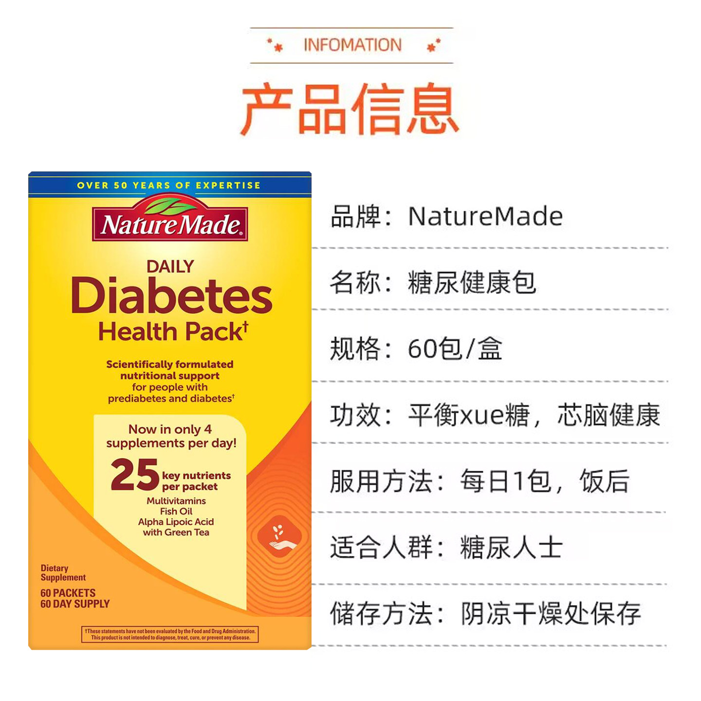 为您提供商品美国直邮 Health Pack维生素 30包 NatureMade糖尿健康包Diabetes的详细介绍,