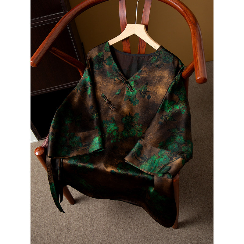 为您提供商品丝艺100%桑蚕丝40姆米小重缎香云纱皮子真丝连肩袖 春 上衣国风小衫的详细介绍,