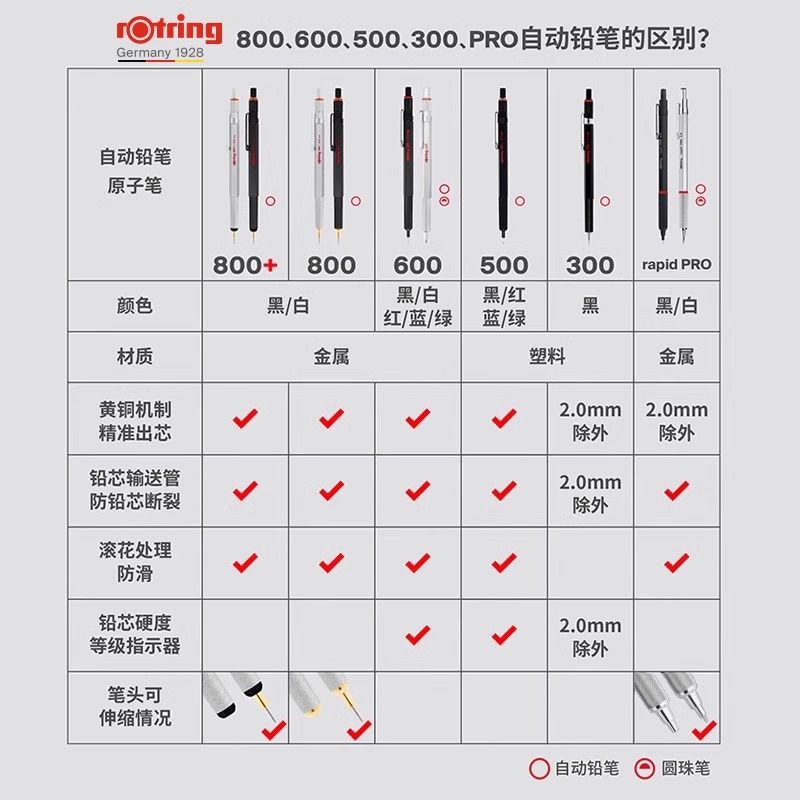 为您提供商品德国rotring红环600自动铅笔800全金属0.5mm专业绘图制图素描设计活动铅笔0.7mm进口低重心学生用2.0mm自动笔的详细介绍,