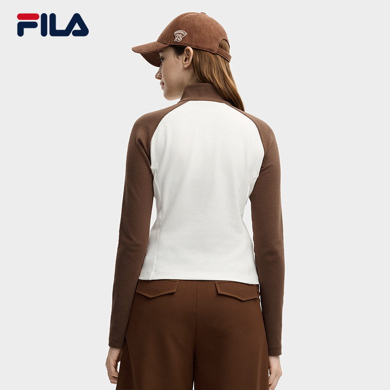 休闲拼色半拉链正品 FILA斐乐官方女子针织长袖 长T 时尚 新款 衫 春季
