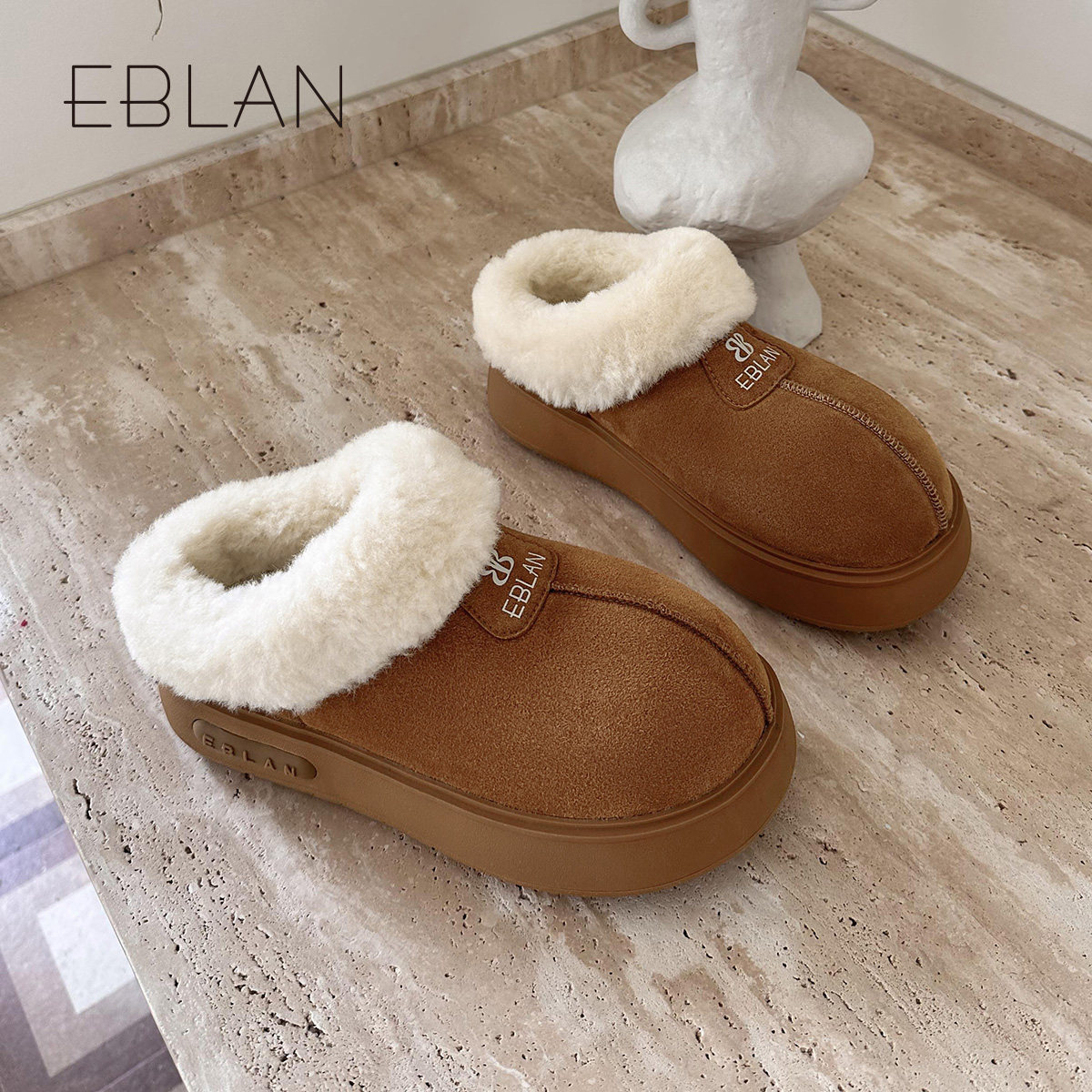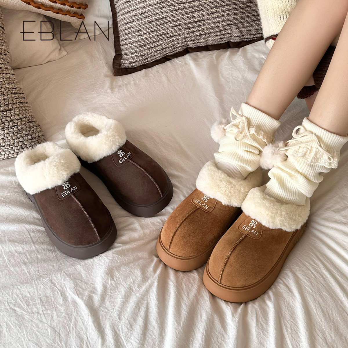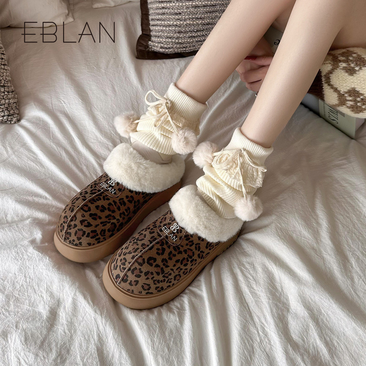 为您提供商品新款 EBLAN 伊伴厚底大头豹纹毛毛半拖鞋 女2025冬季 加绒雪地靴棉鞋的详细介绍,