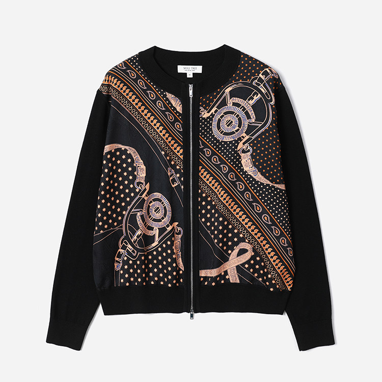 金质马刺老钱印花全真丝拼接日本真丝棉针织开衫 套衫 WZT08145由