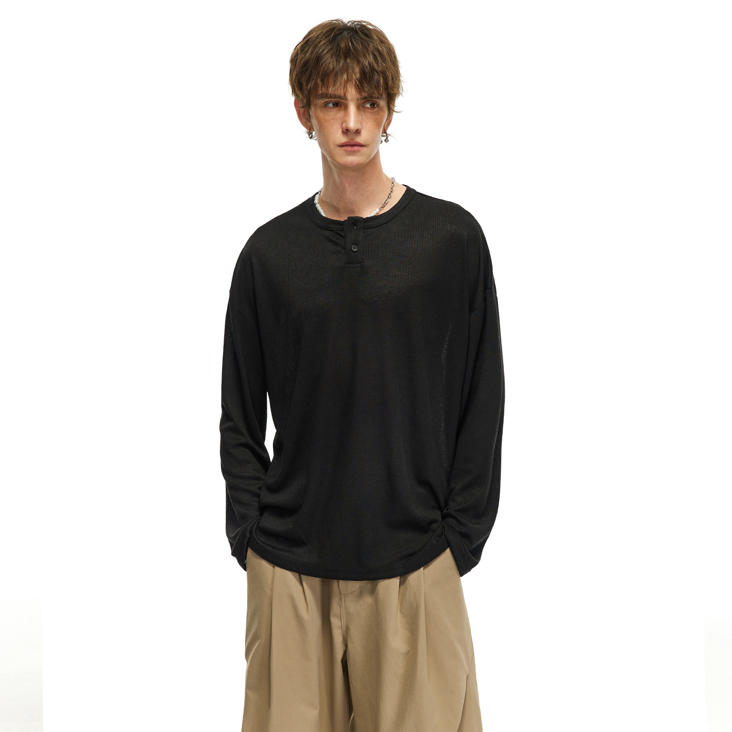 为您提供商品长袖 亚麻纯色亨利领个性 美式 时尚 简约打底衫 T恤男女春季 男道新款的详细介绍,