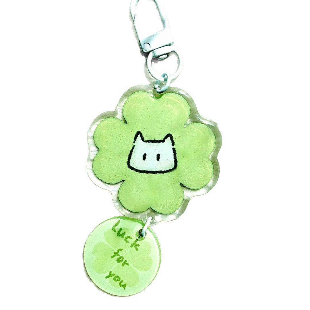 幸运猫猫四叶草挂件亚克力可爱书包卡通挂饰送闺蜜礼物 同款