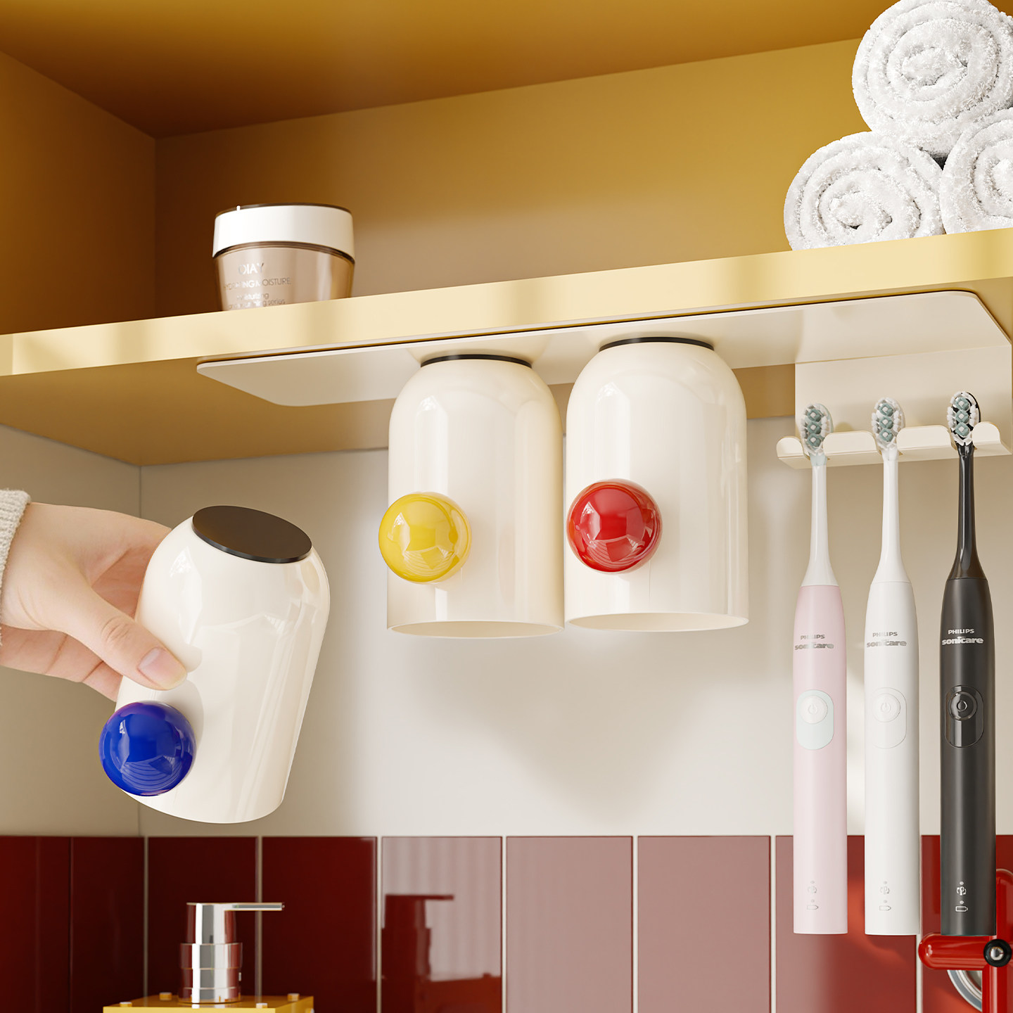 电动牙刷置物架 镜柜下牙刷架磁吸倒挂洗漱口杯牙刷牙杯挂架壁挂式