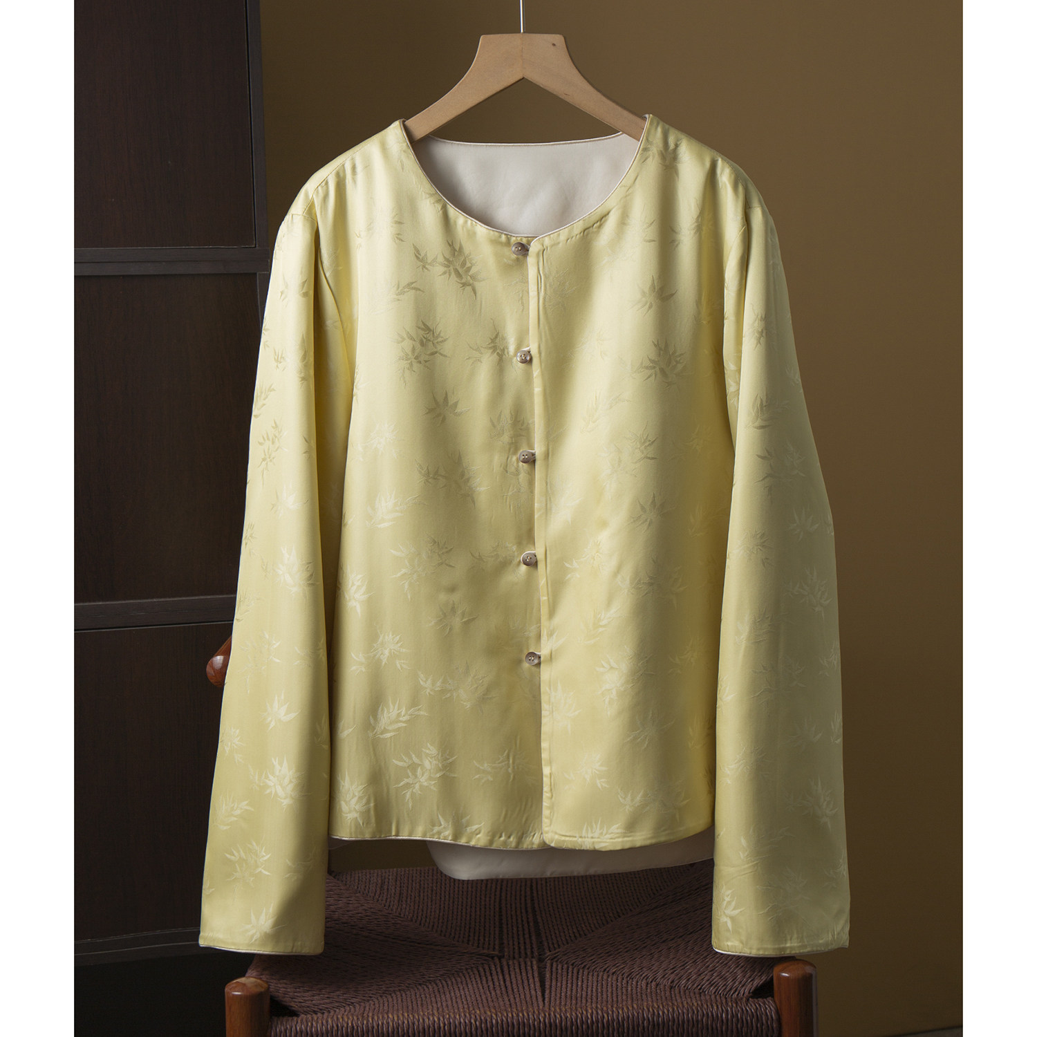 丝艺双面穿重工刺绣100%桑蚕丝真丝圆领外套女国风宽松挽袖 春 开衫由