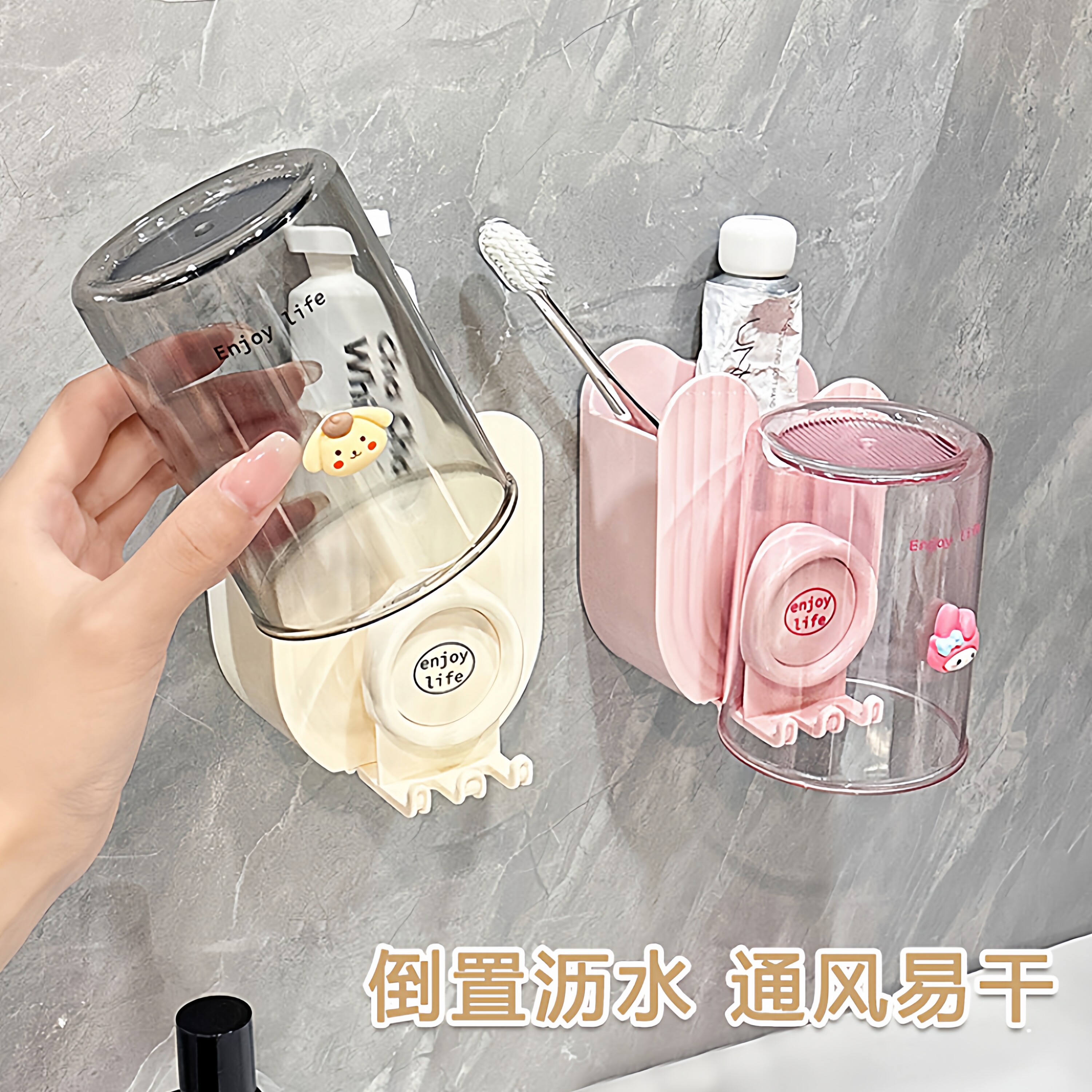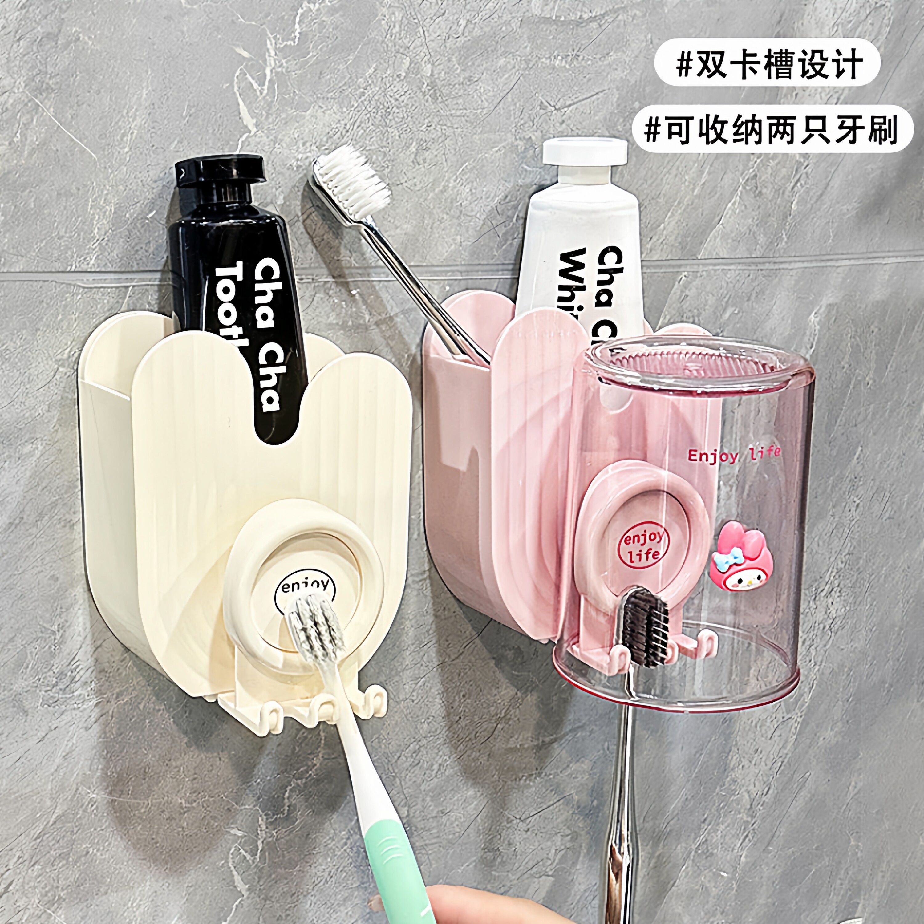 卫生间浴室牙膏刷牙杯收纳架子 电动牙刷漱口杯置物架免打孔壁挂式由