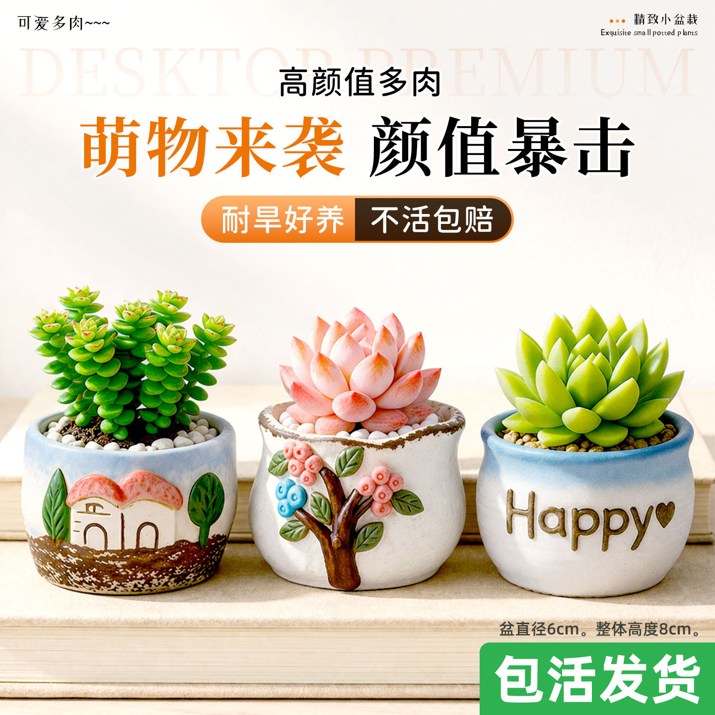 多肉带盆桌面小盆栽办公室绿植仙人球稀罕植物花室内幼儿园仙人掌