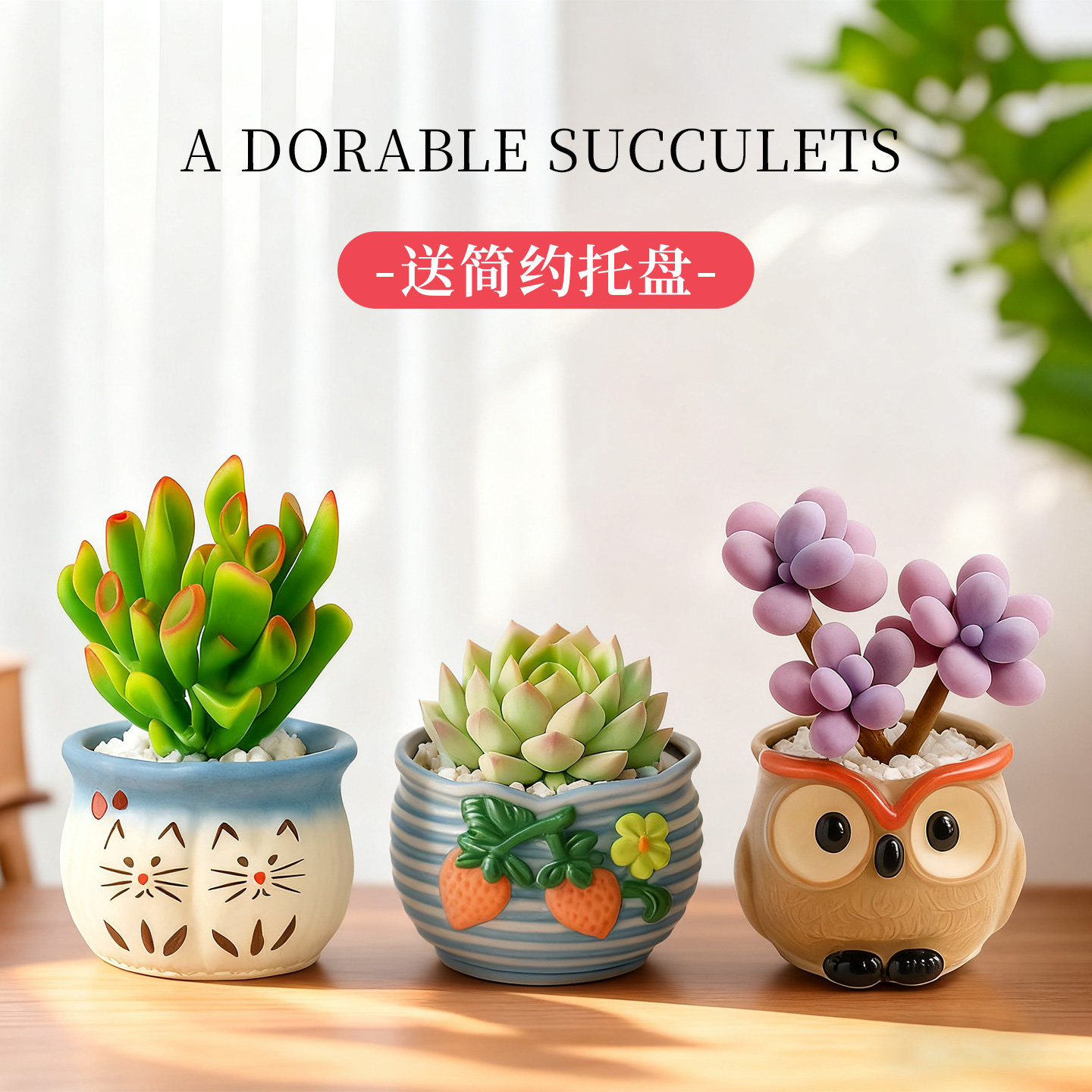 多肉植物组合盆栽含盆含土办公室绿植阳台桌面幼儿园礼物室内好养