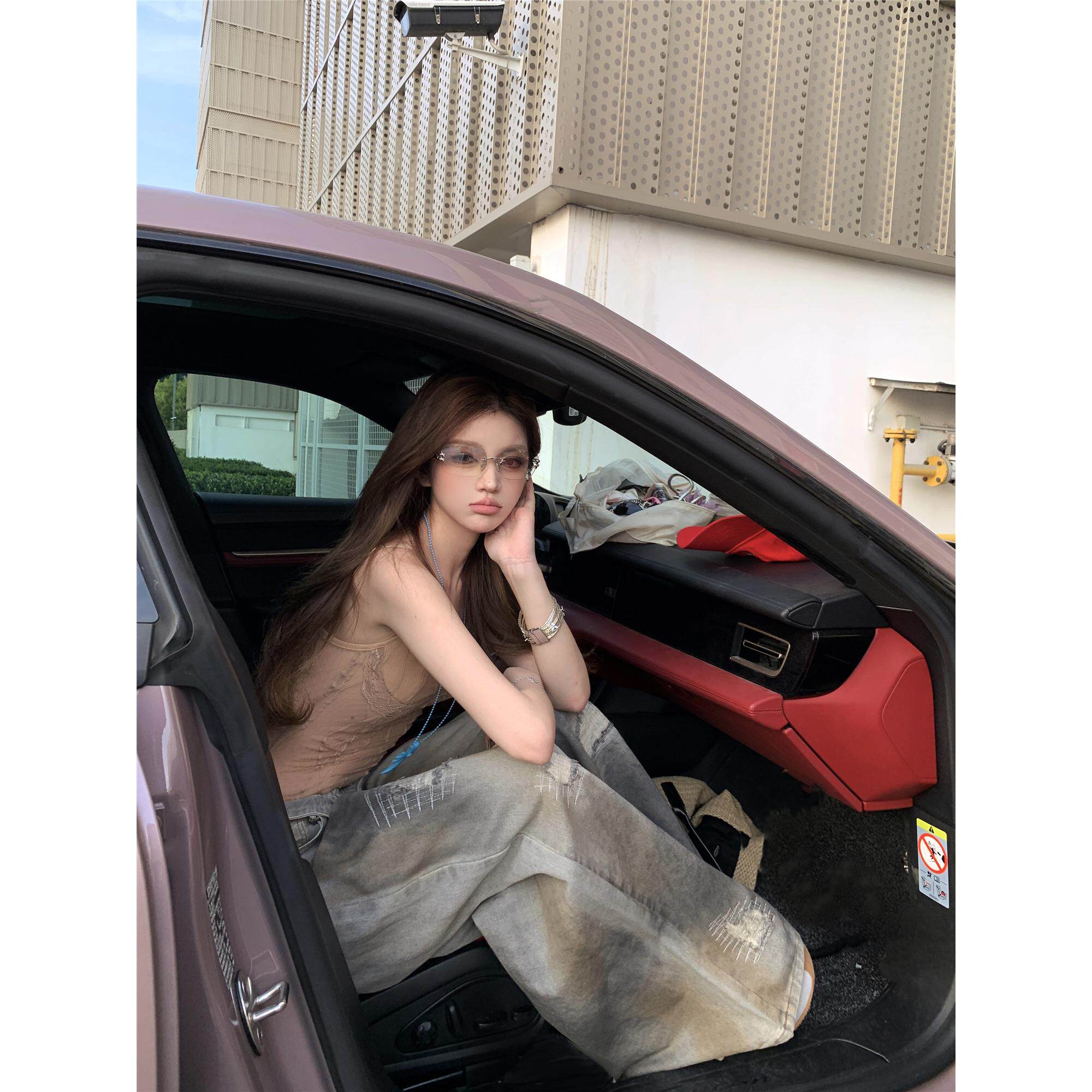 蕾丝拼接性感吊带背心女夏季 辣妹连体衣修身 纯欲无袖 外穿上衣 美式