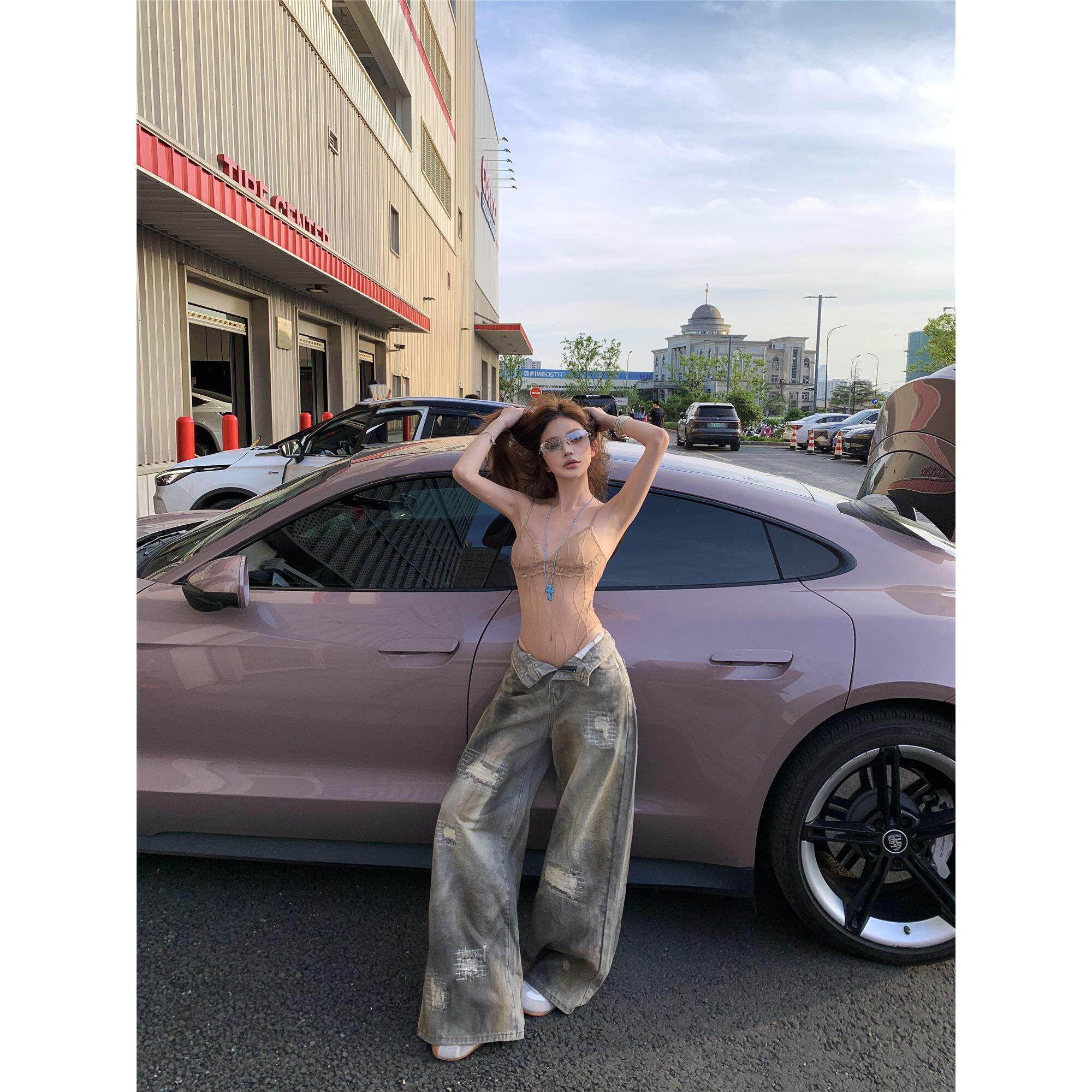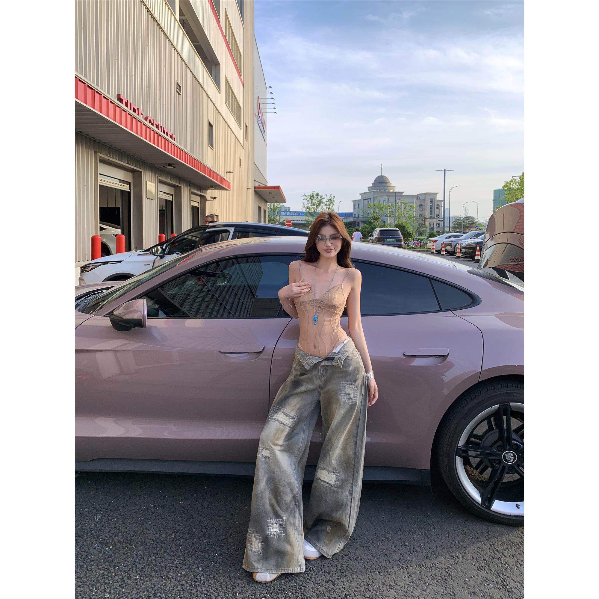 蕾丝拼接性感吊带背心女夏季 辣妹连体衣修身 纯欲无袖 外穿上衣 美式由