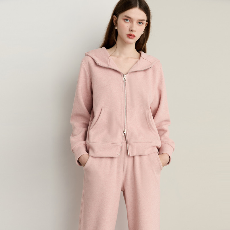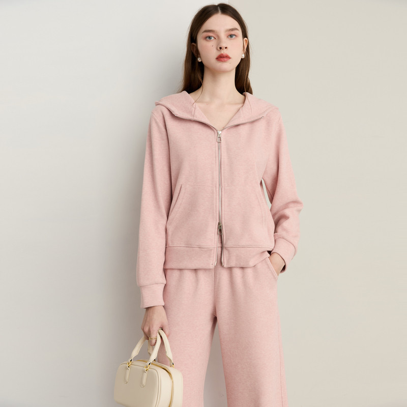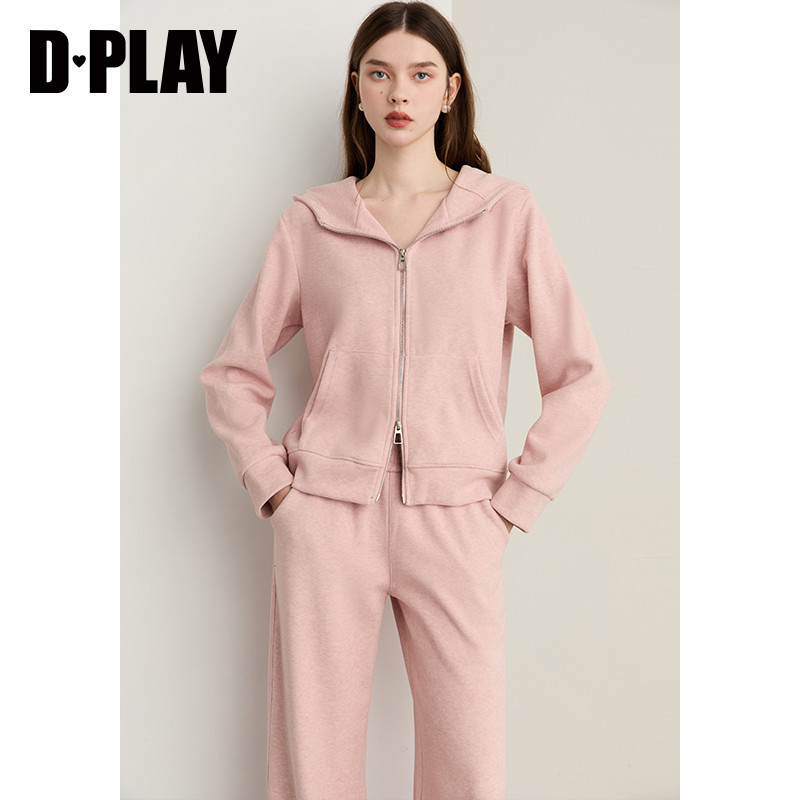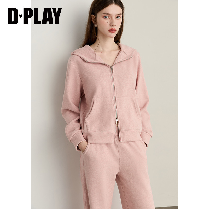 DPLAY冬季 粉色套装 女拉链连帽宽松通勤外套裤 子两件套 新款