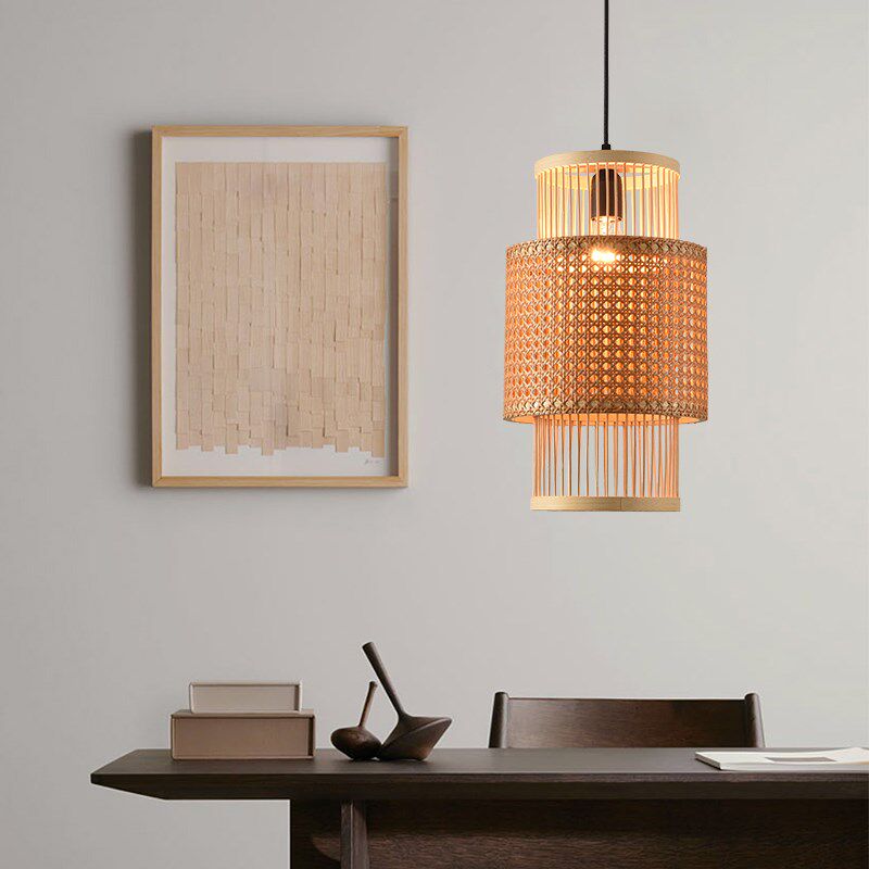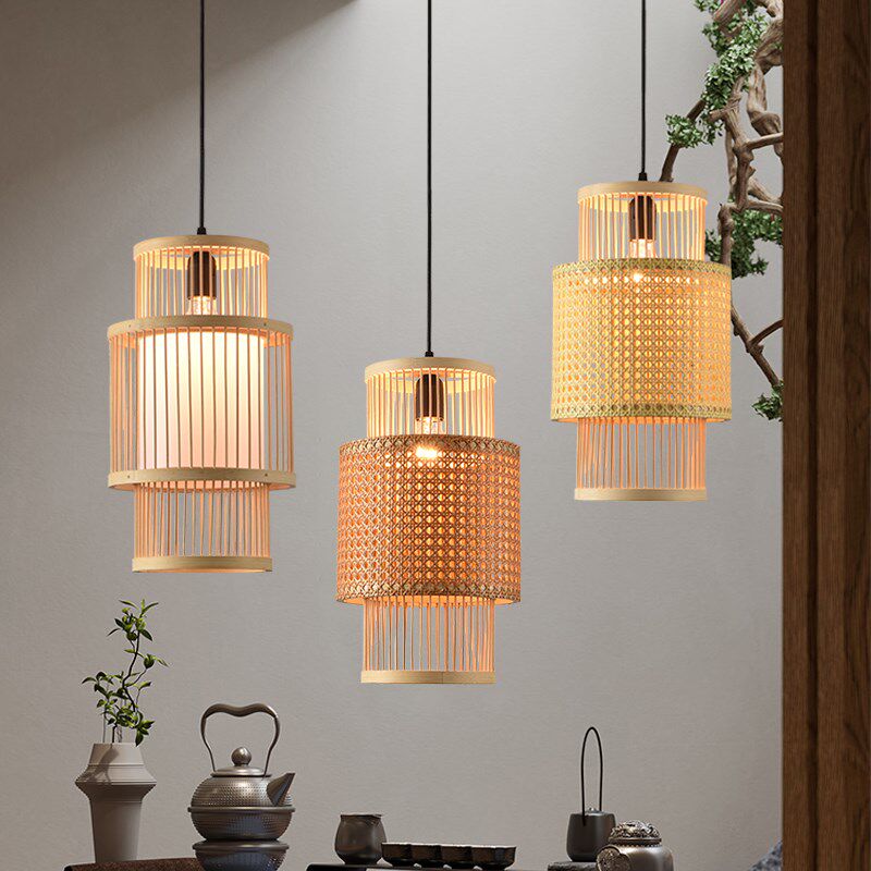 竹编吊灯新中式 竹艺灯笼民宿仿古灯罩 灯饰藤编禅意茶室餐厅灯日式