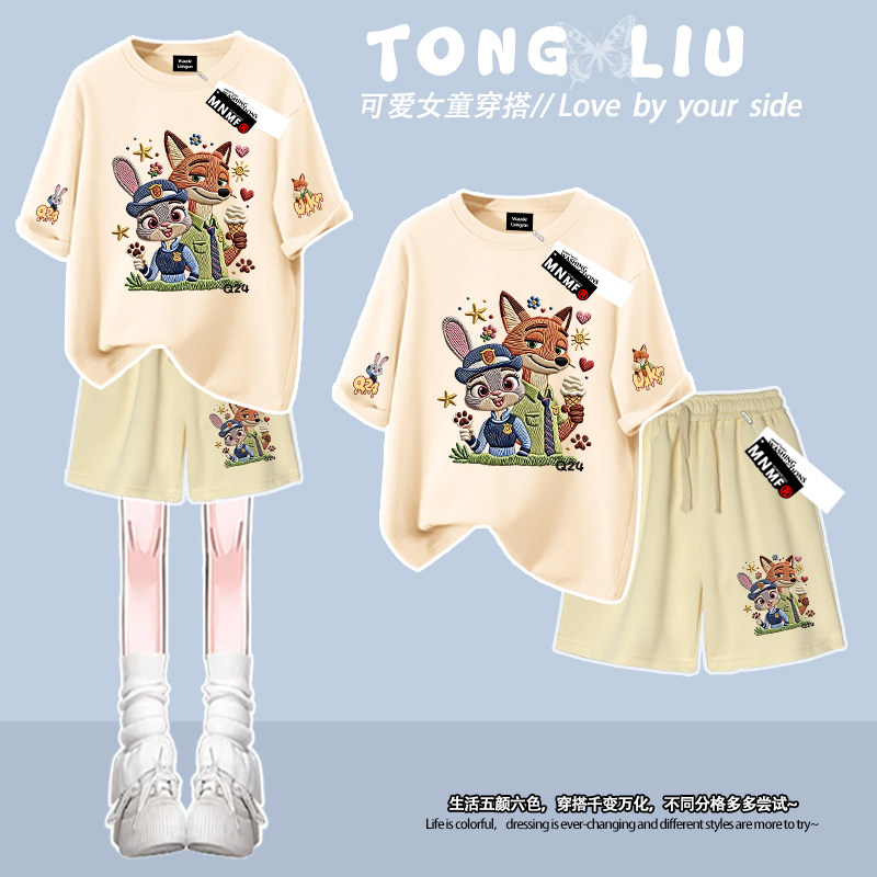 套装 卡通洋气宽松中大童两件套夏 男童短裤 疯狂动物城女童t恤短袖由
