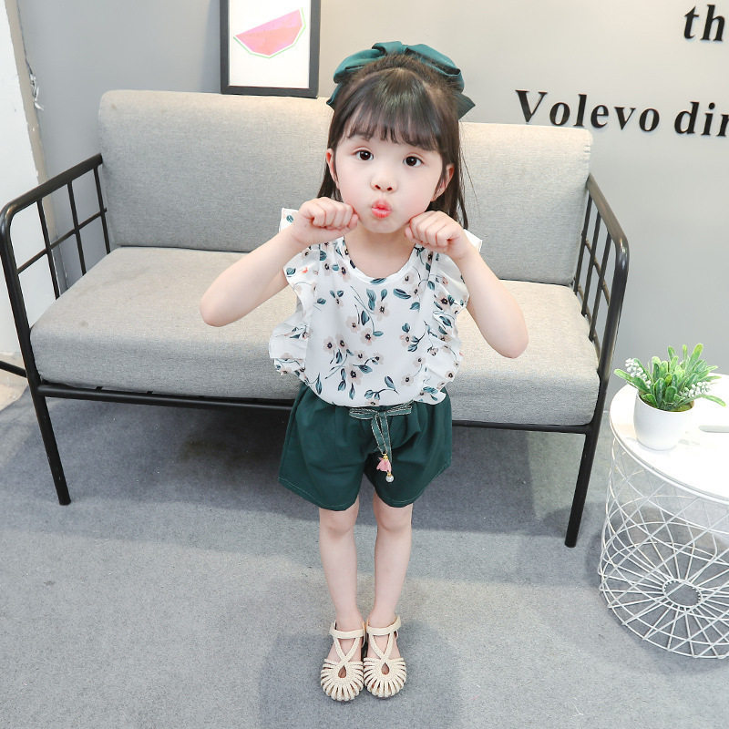 直批女宝宝碎花韩版 多洛可外贸夏款 小清新女童洋气两件1 5岁 套装由