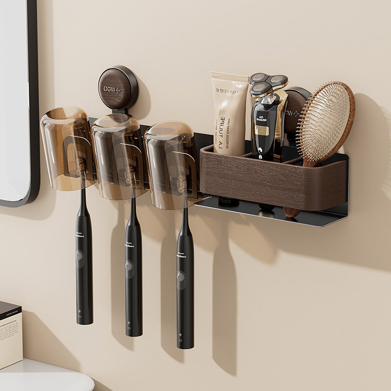 电动牙刷牙膏架 吸盘牙刷置物架中古风免打孔刷牙杯架卫生间壁挂式