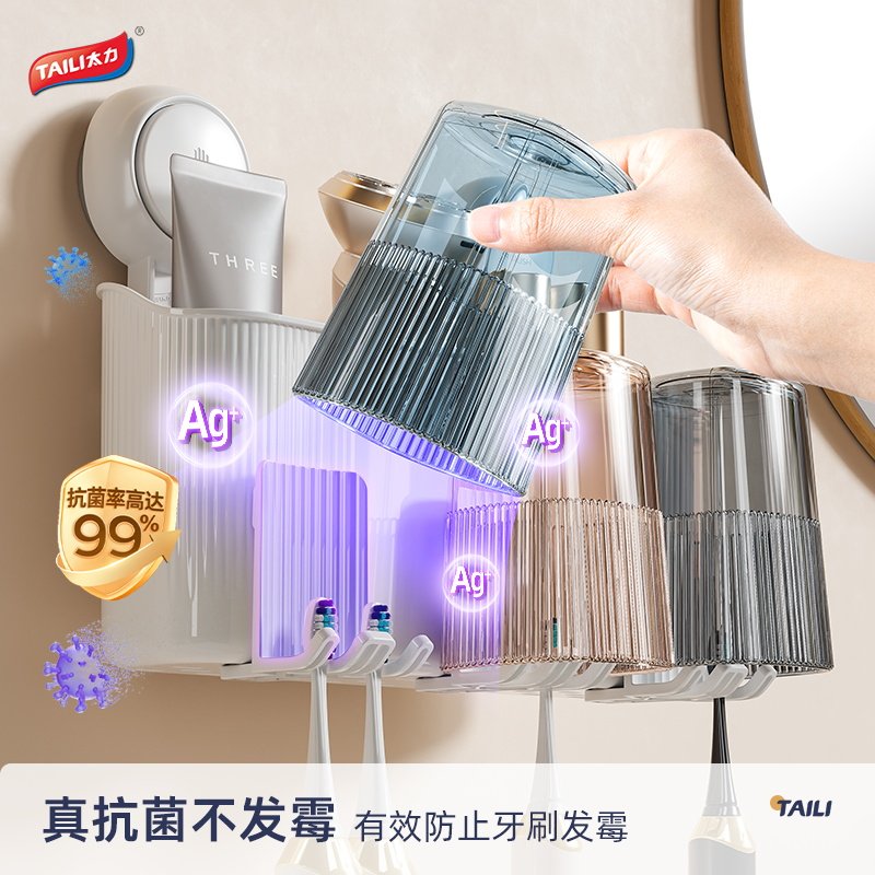 为您提供商品免打孔电动牙膏漱口挂杯 太力真空吸盘牙刷置物架卫生间浴室壁挂式的详细介绍,