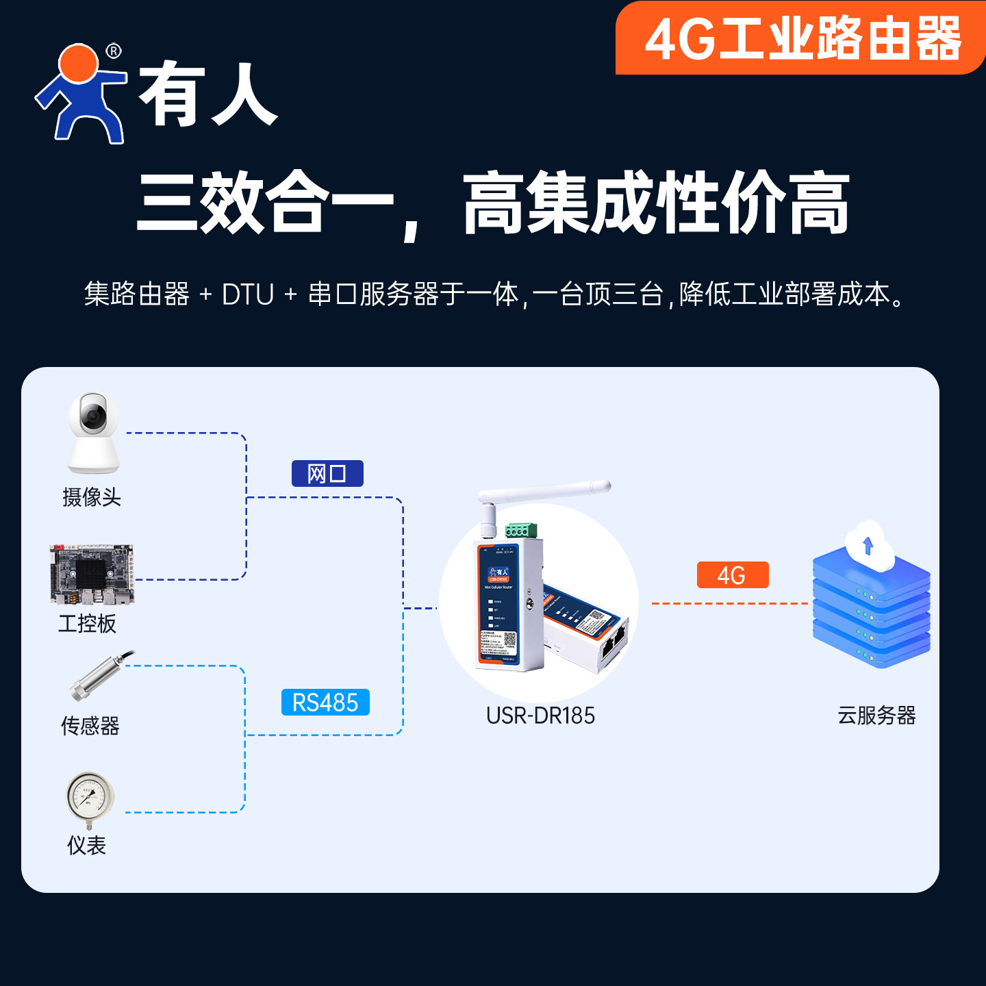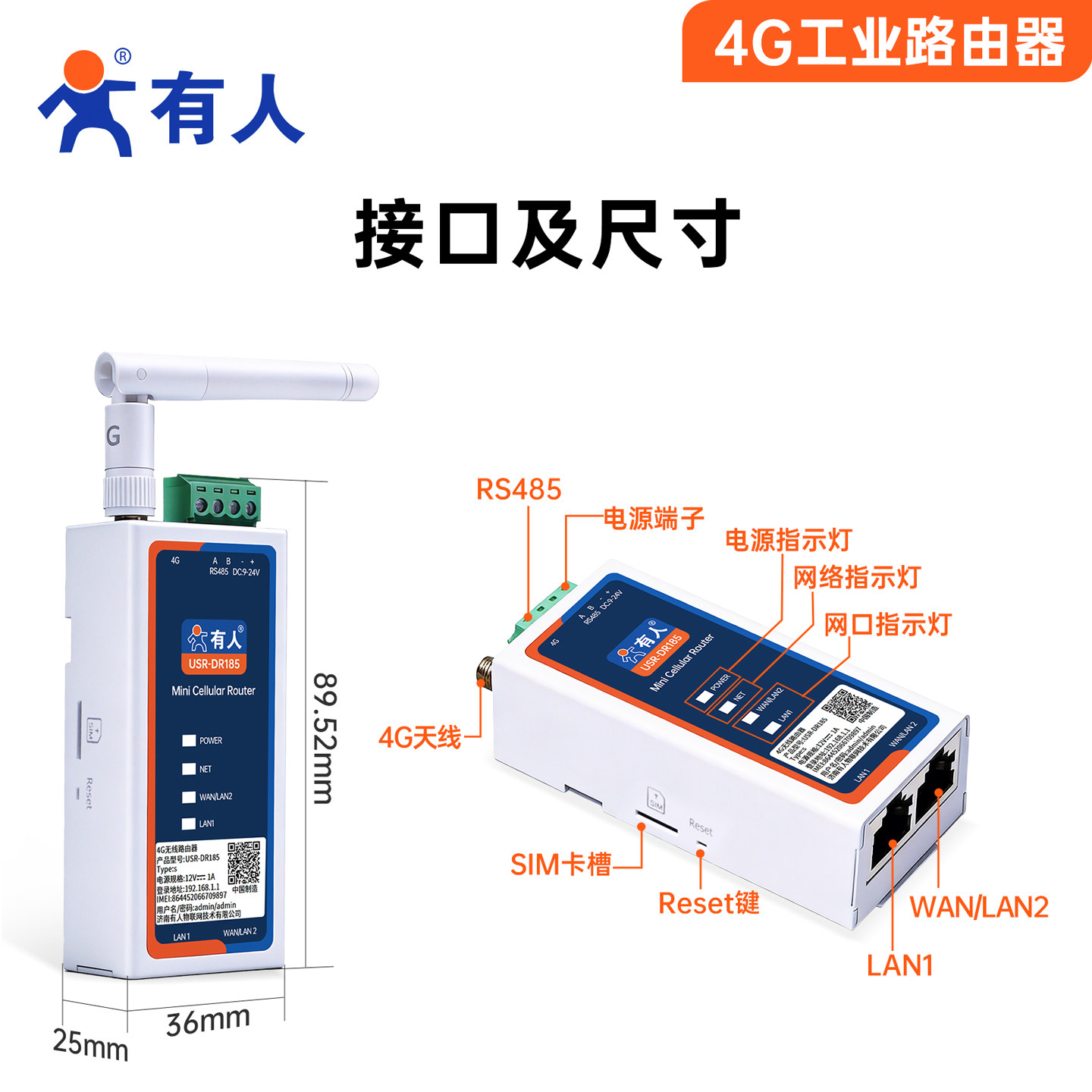 为您提供商品有人4G工业路由器cat.1免插卡异地组网无线口红小体积全网通联网模块4g DR185 dtu导轨定位孔USR的详细介绍,