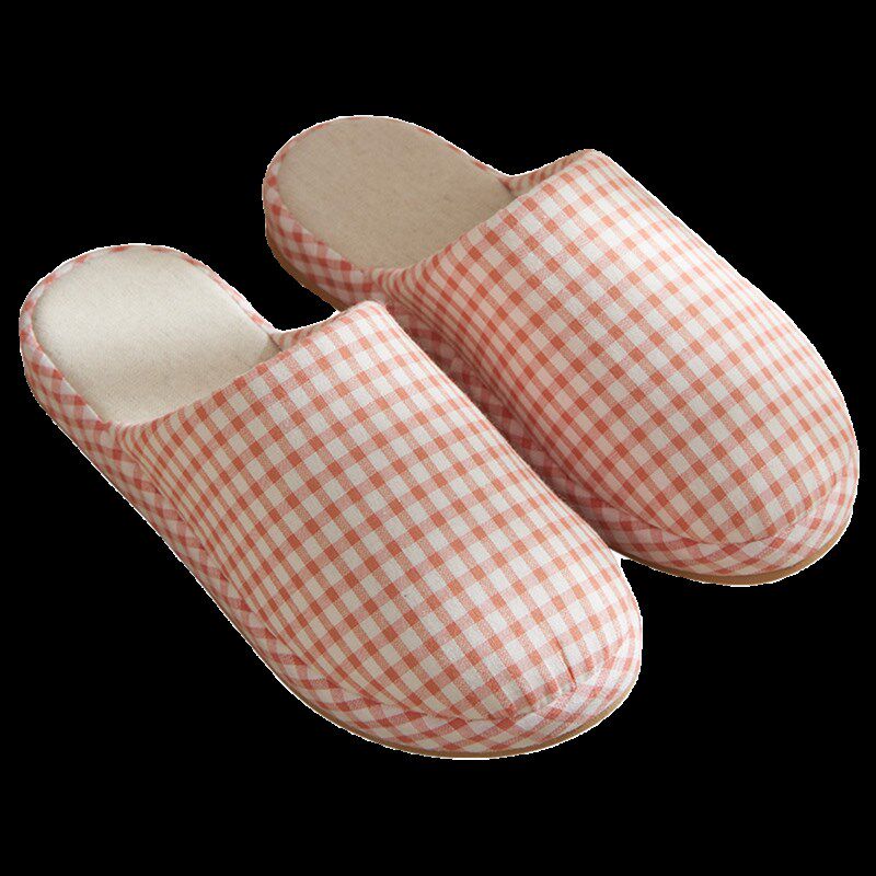 简约小格子四季 女秋冬天室内家居厚底防滑情侣家用男 棉布包头拖鞋由