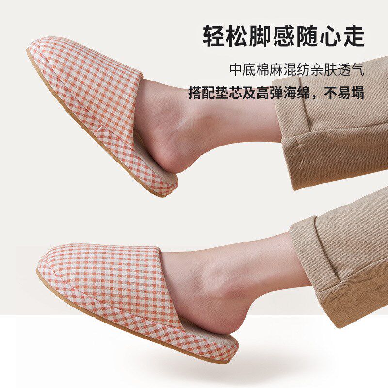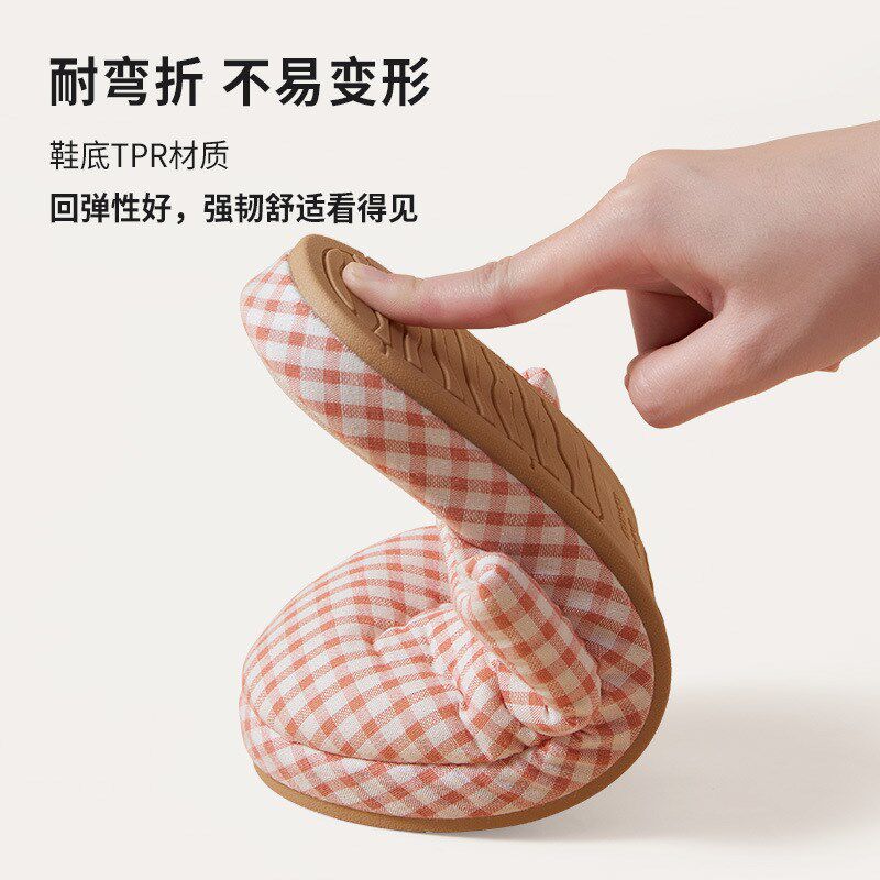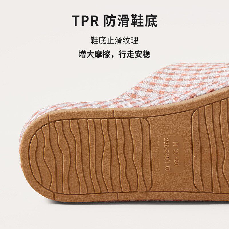 为您提供商品简约小格子四季 女秋冬天室内家居厚底防滑情侣家用男 棉布包头拖鞋的详细介绍,