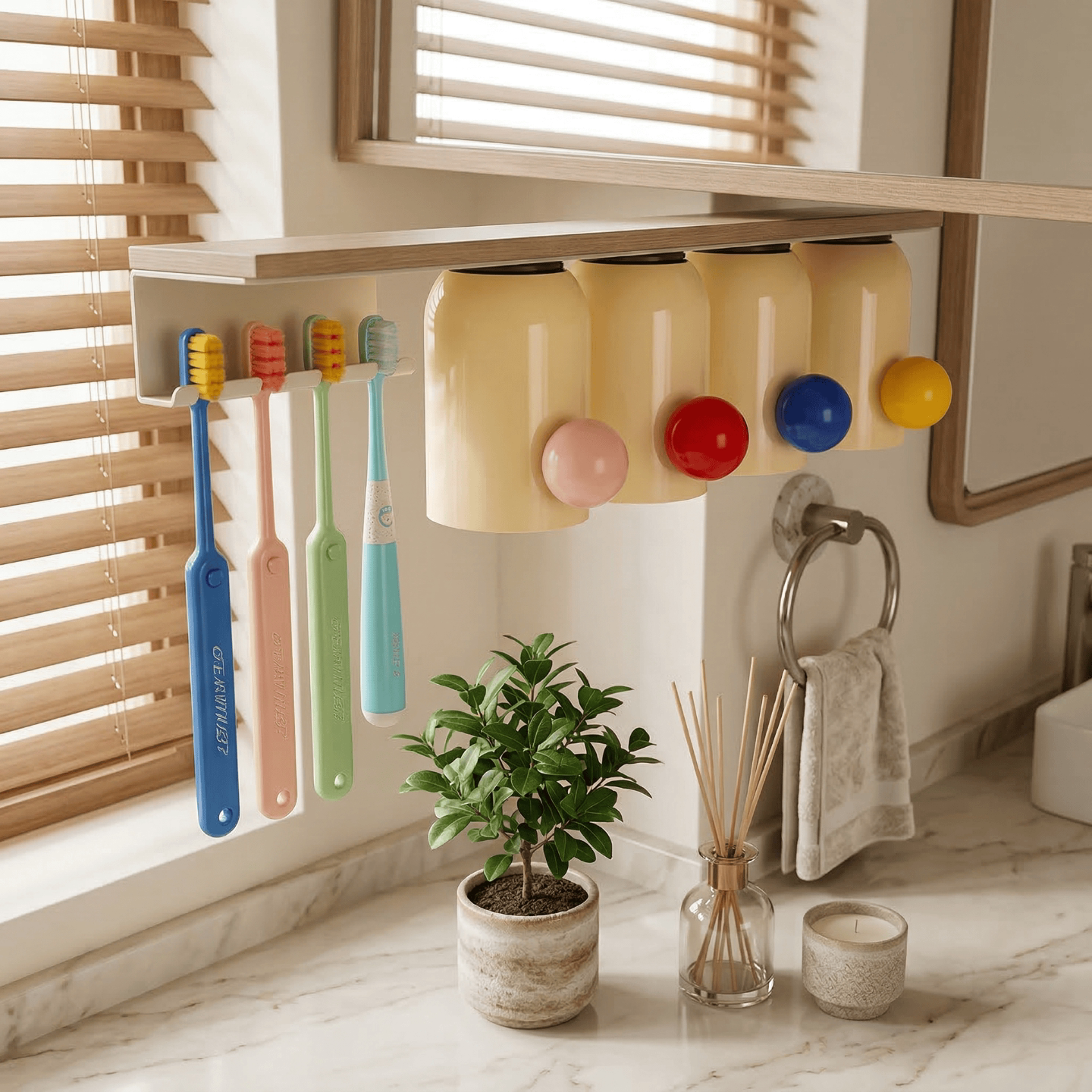 镜柜下牙刷架倒挂磁吸漱口杯置物架牙刷牙杯挂架壁挂电动牙刷收纳