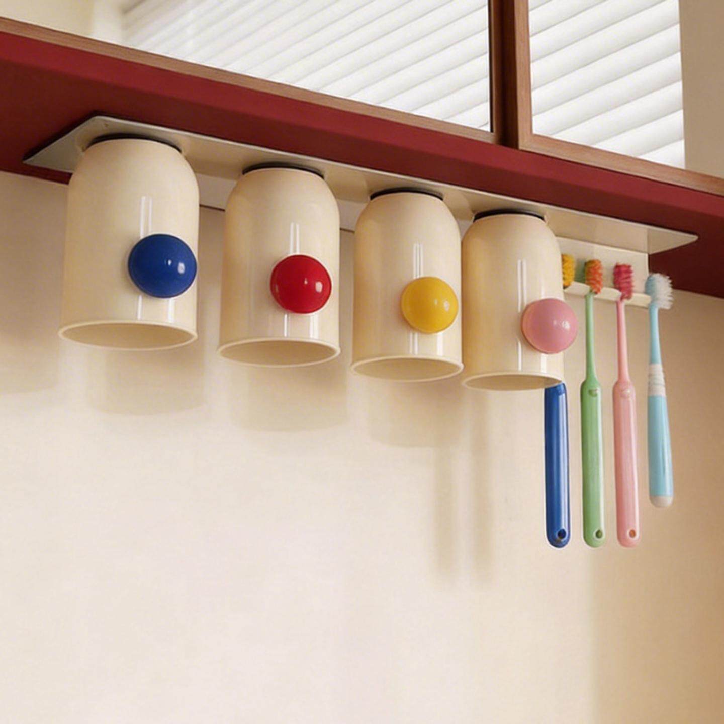 镜柜下牙刷置物架免打孔卫生间洗漱台壁挂漱口杯牙杯电动刷牙杯子