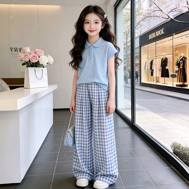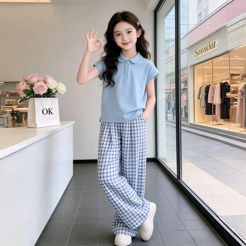 休闲POLO衫 女童套装 两件套 T恤大童夏装 儿童洋气短袖 夏季 2026新款