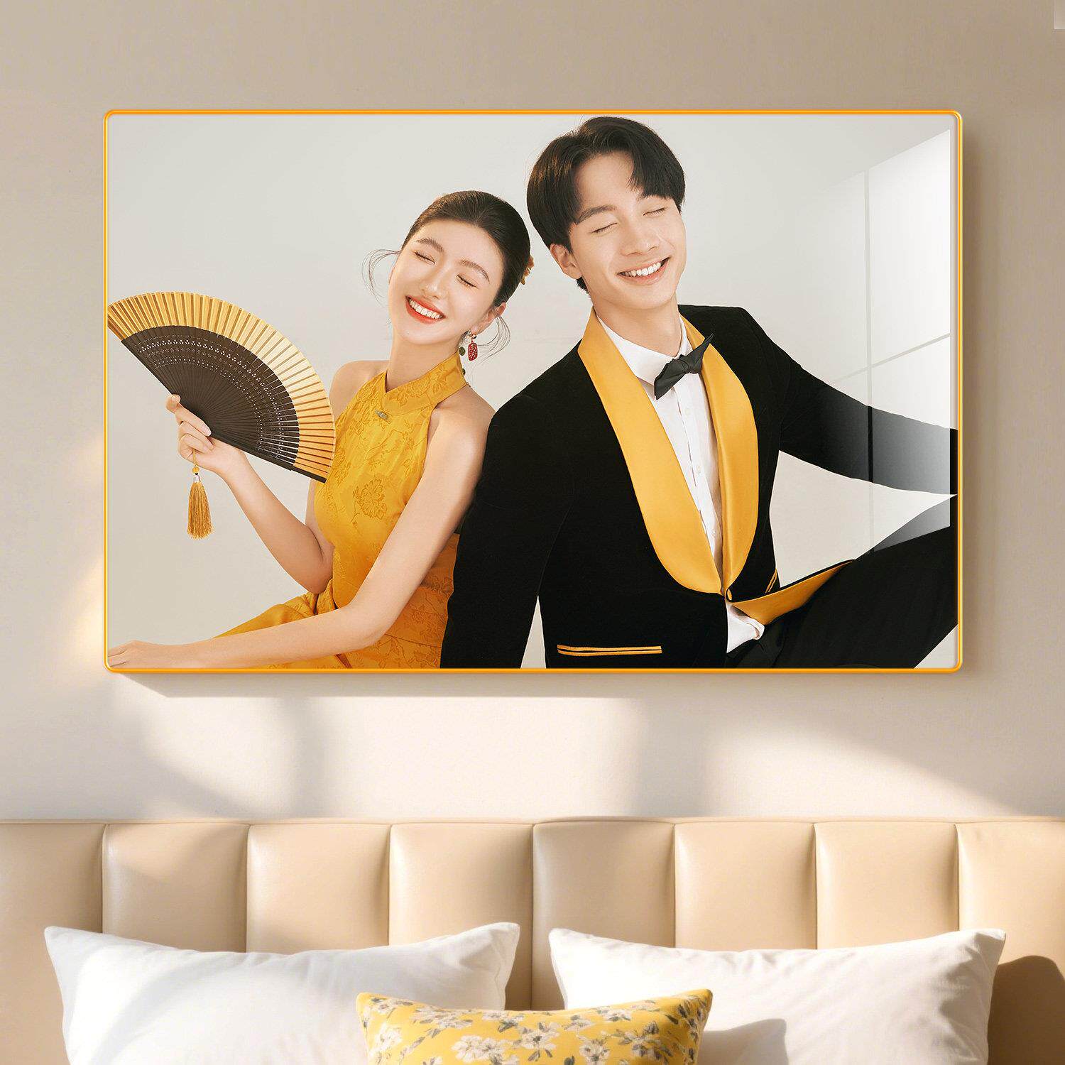定挂墙纯色制婚纱照挂墙头洗照做成相框床冲结片婚照精修水晶洗放