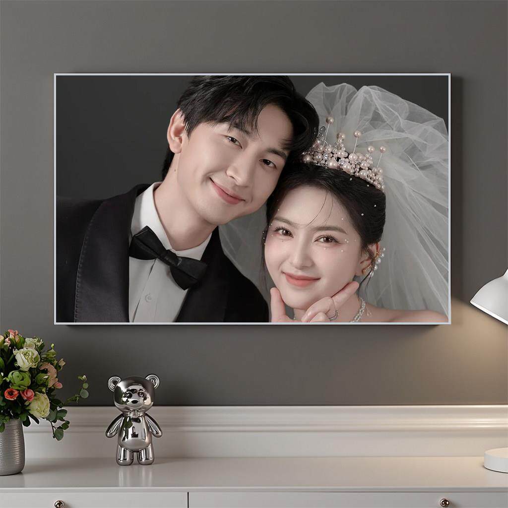 定挂墙纯色制婚纱照挂墙头洗照做成相框床冲结片婚照精修水晶洗放由