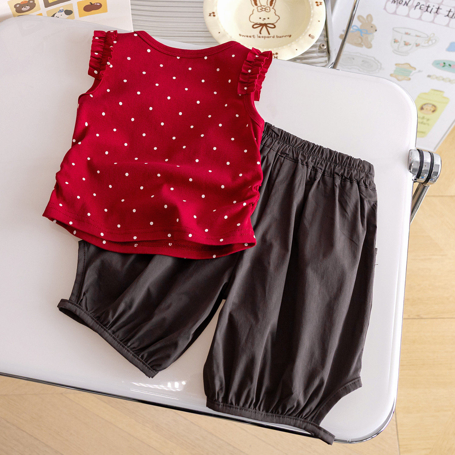 九分束脚裤 2026夏季 子两件套8 洋气波点卡通背心 套装 新款 女童时尚由