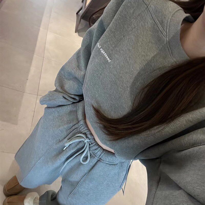 圆领宽松炸街卫衣卫裤 显瘦百搭洋气两件套女 休闲套装 2025春秋新款