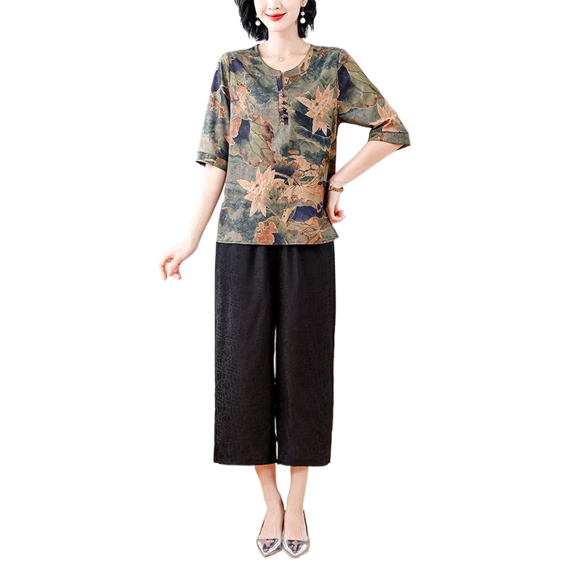 为您提供商品香云纱桑蚕丝套装 新款 中老年人上衣妈妈装 洋气宽松两件套 2026夏季的详细介绍,