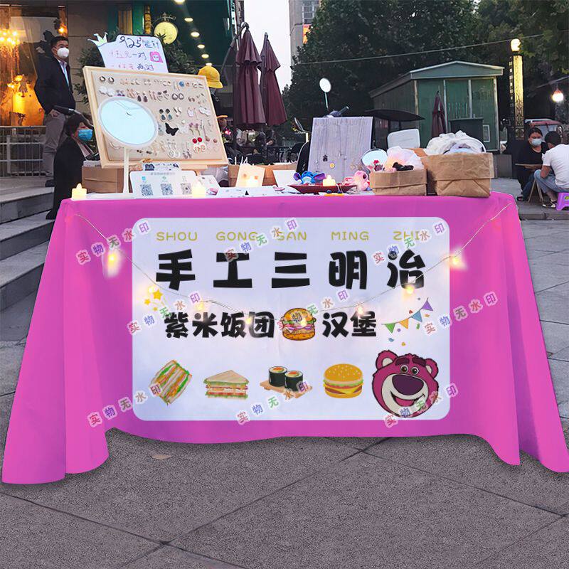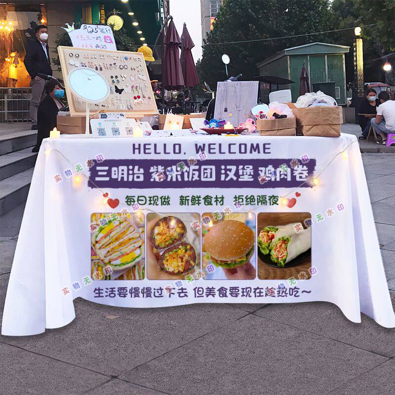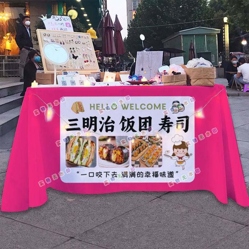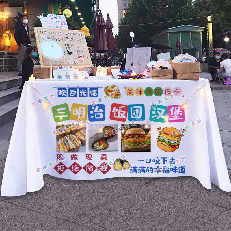 三明治饭团寿司奶茶汉堡火鸡面摆摊桌布台布夜市街头挂布推车广告