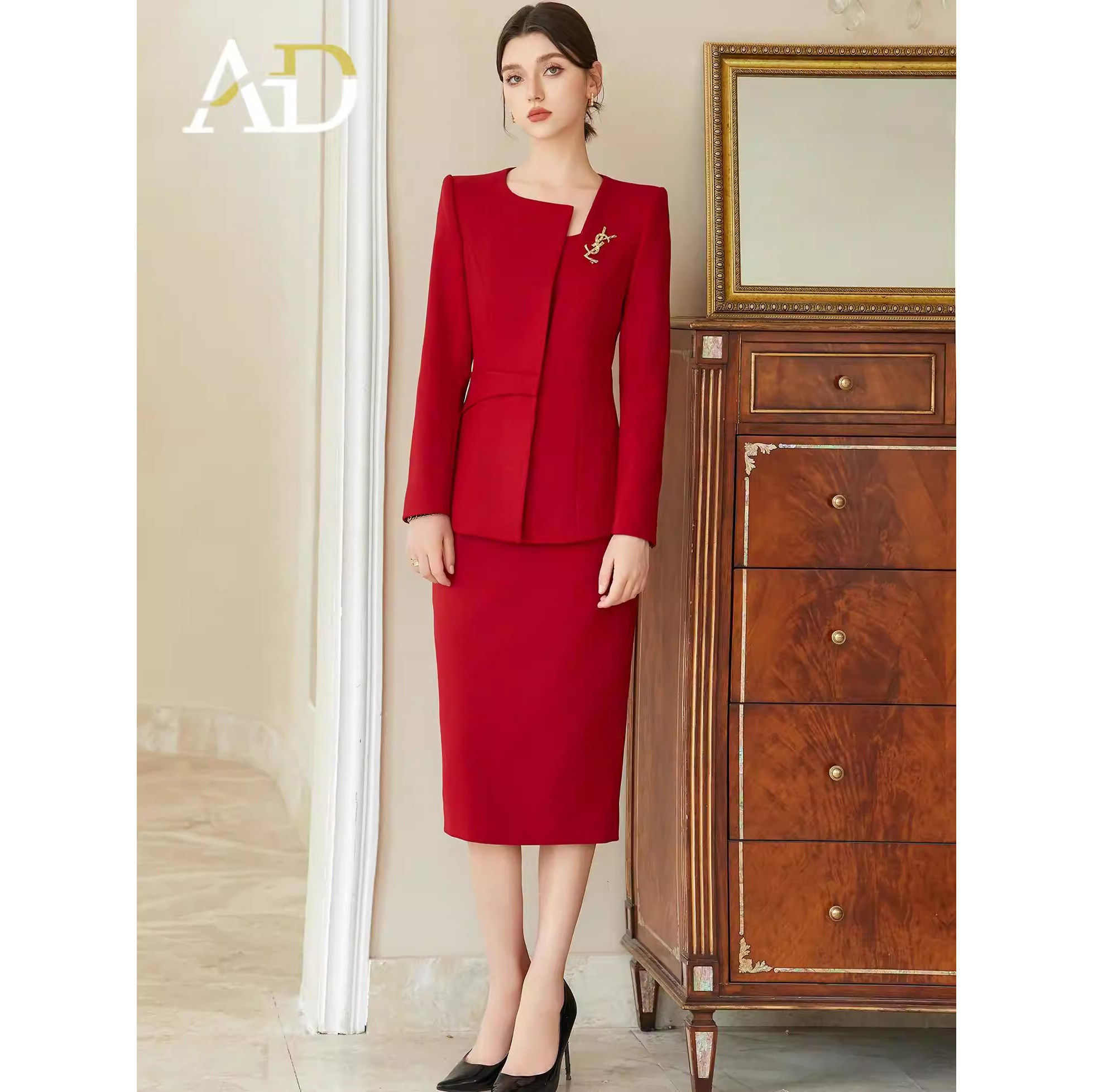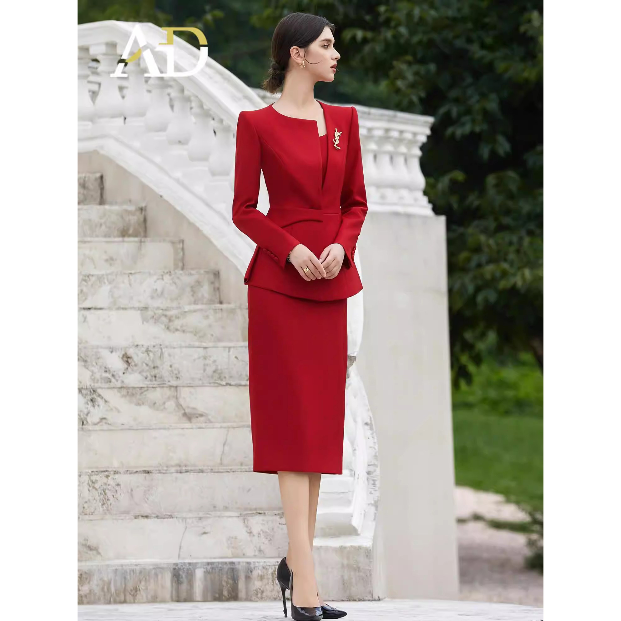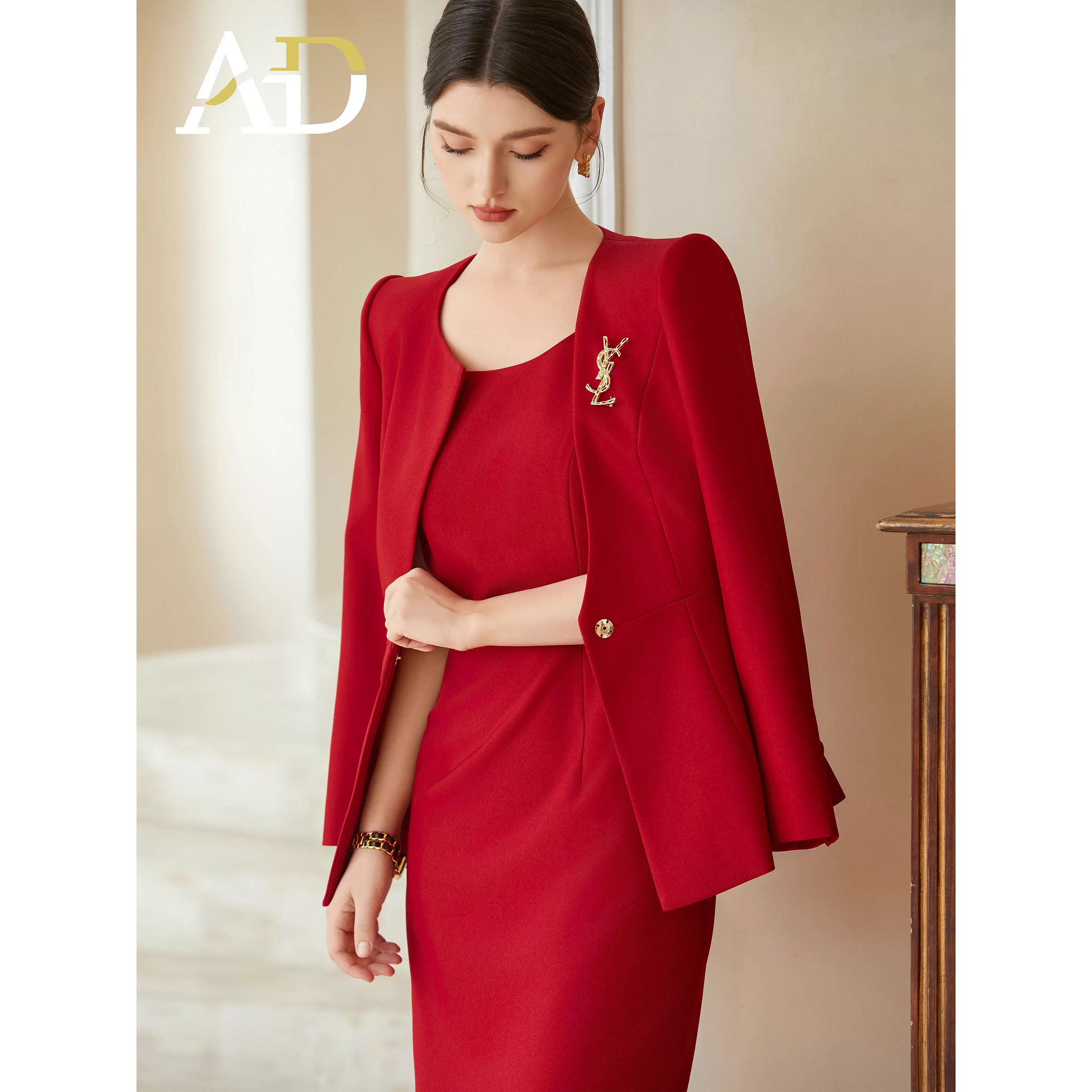 AD年会晚礼服高级感西装 女春秋2025本命年红色时尚 女装 连衣裙套装