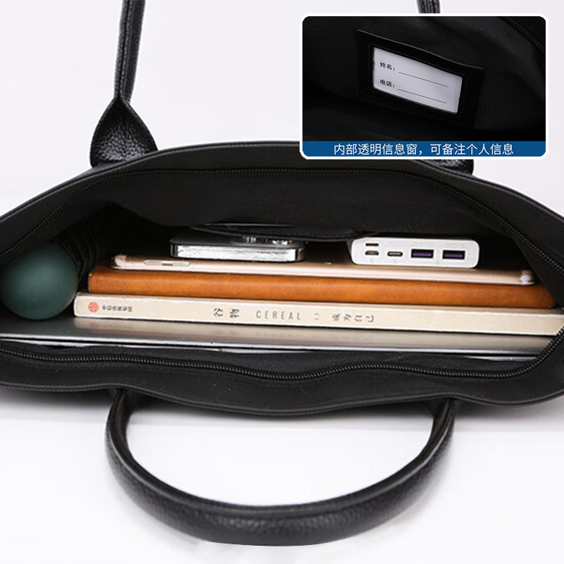斯莫尔商务手提公文包男女通用B4纯黑体制内行政事务包拉链式 得多学术会议专用袋LOGO印刷526B 大容量装
