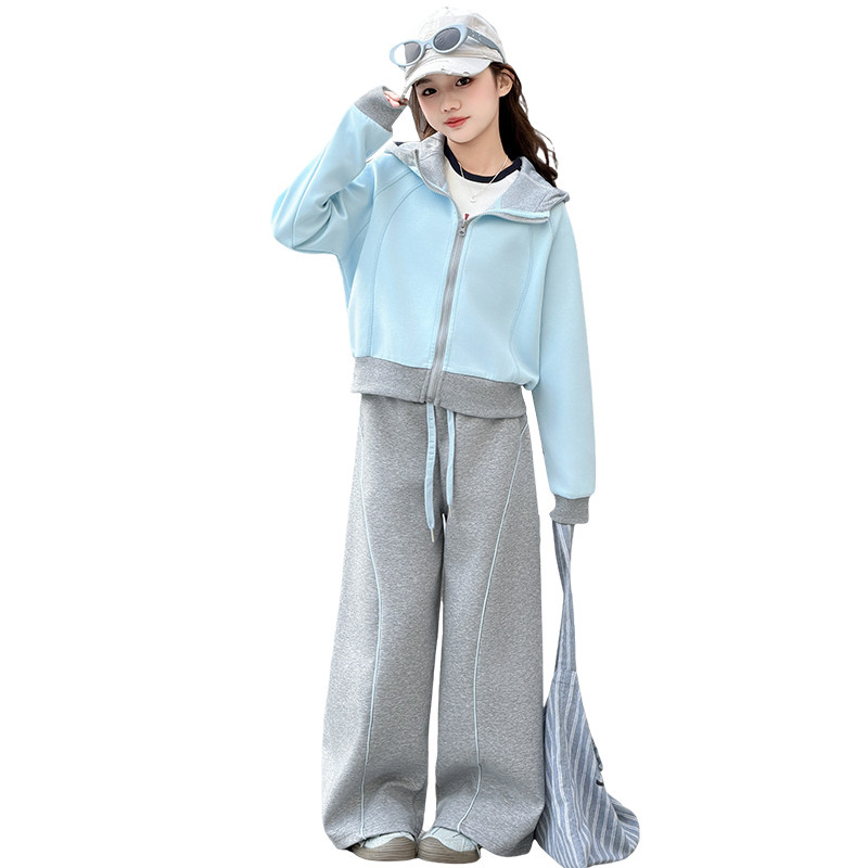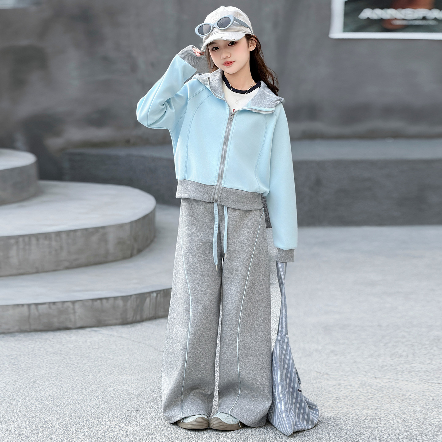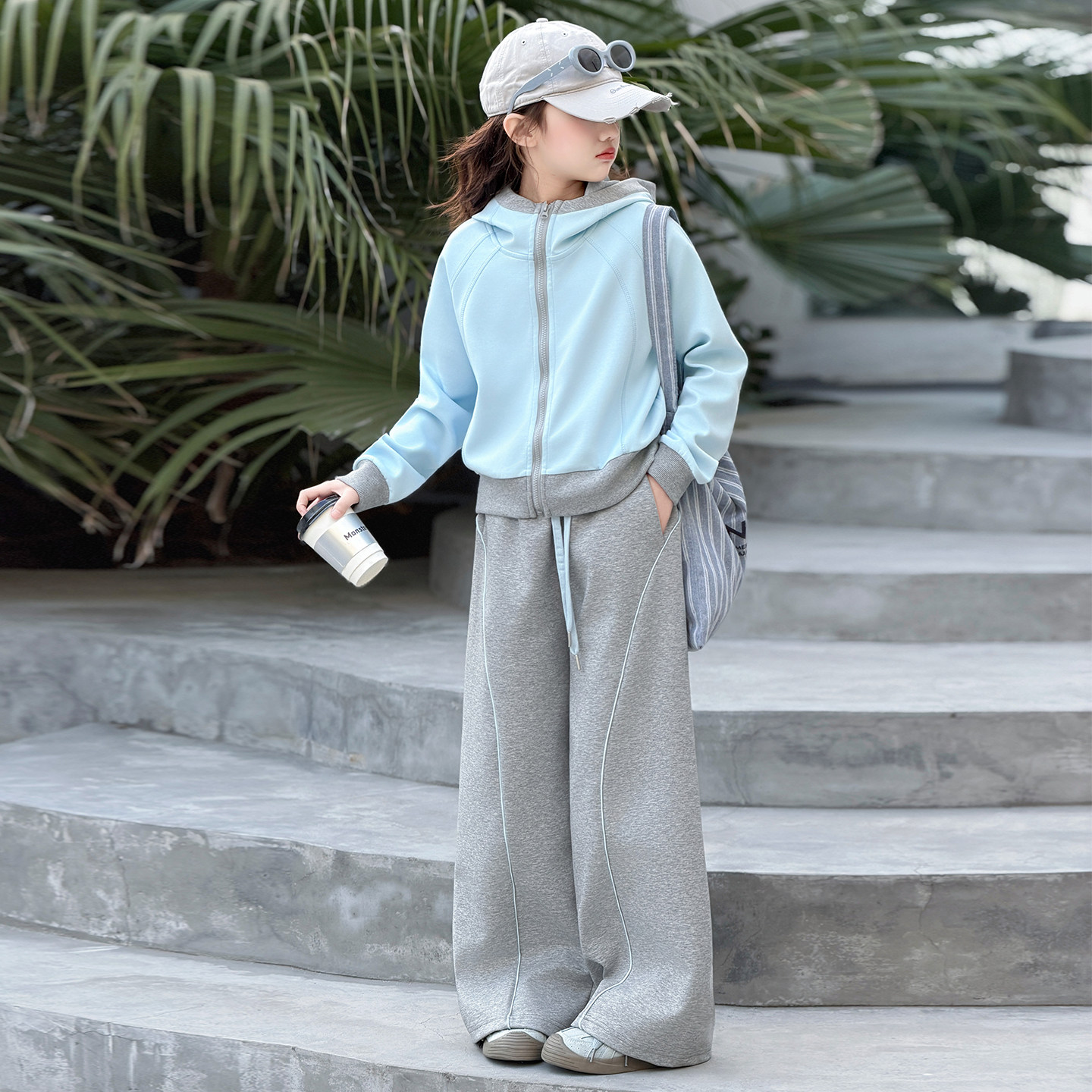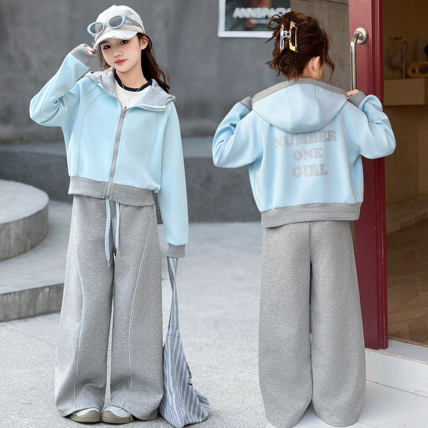 女孩装 女童春秋款 字母拼色外套装 2026新款 韩范洋气休闲两件套 春季由