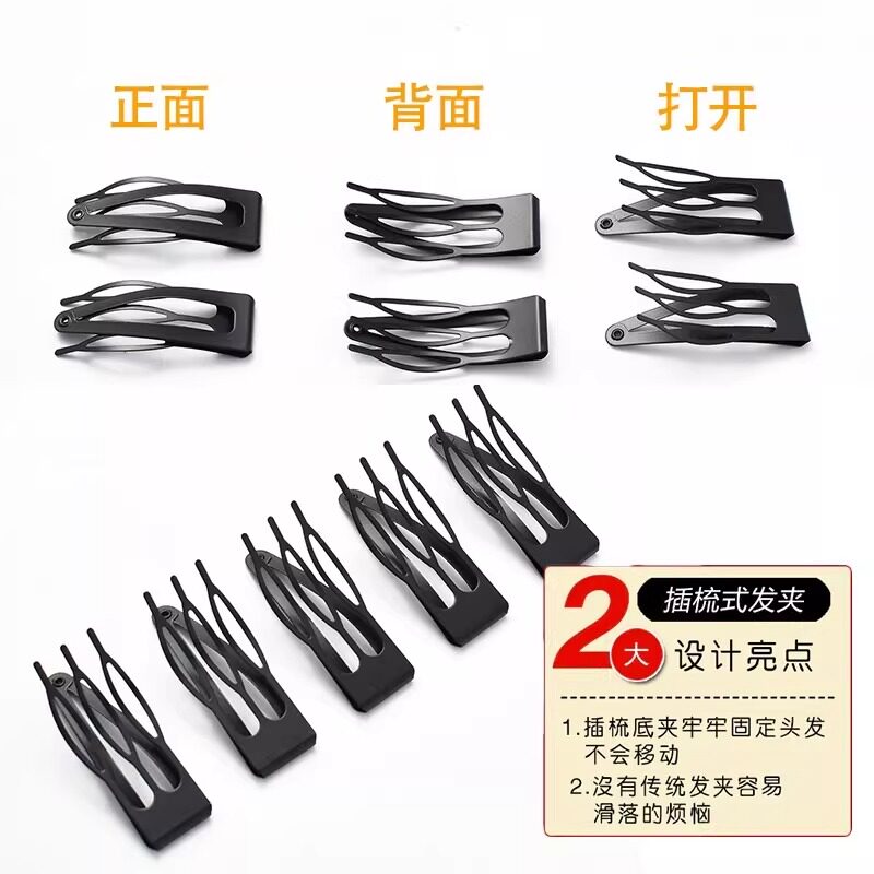 黑色一字夹发夹小黑夹子头饰发卡碎发边夹波浪刚夹女固定头发卡子
