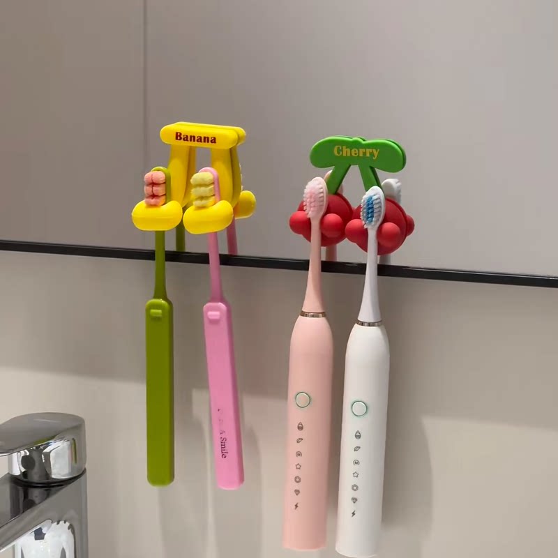 免打孔卫生间浴室牙刷收纳架 可爱水果牙刷架电动牙刷置物架壁挂式由