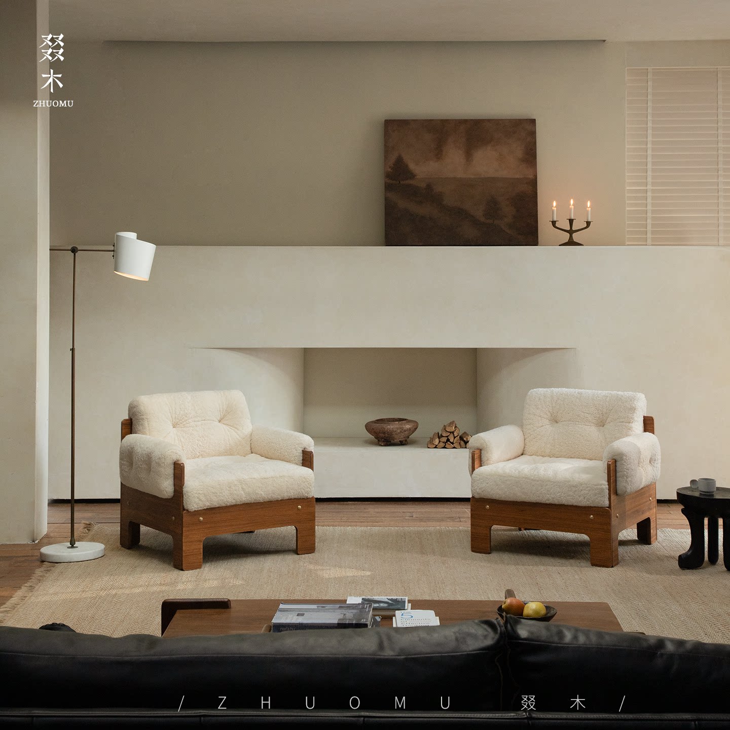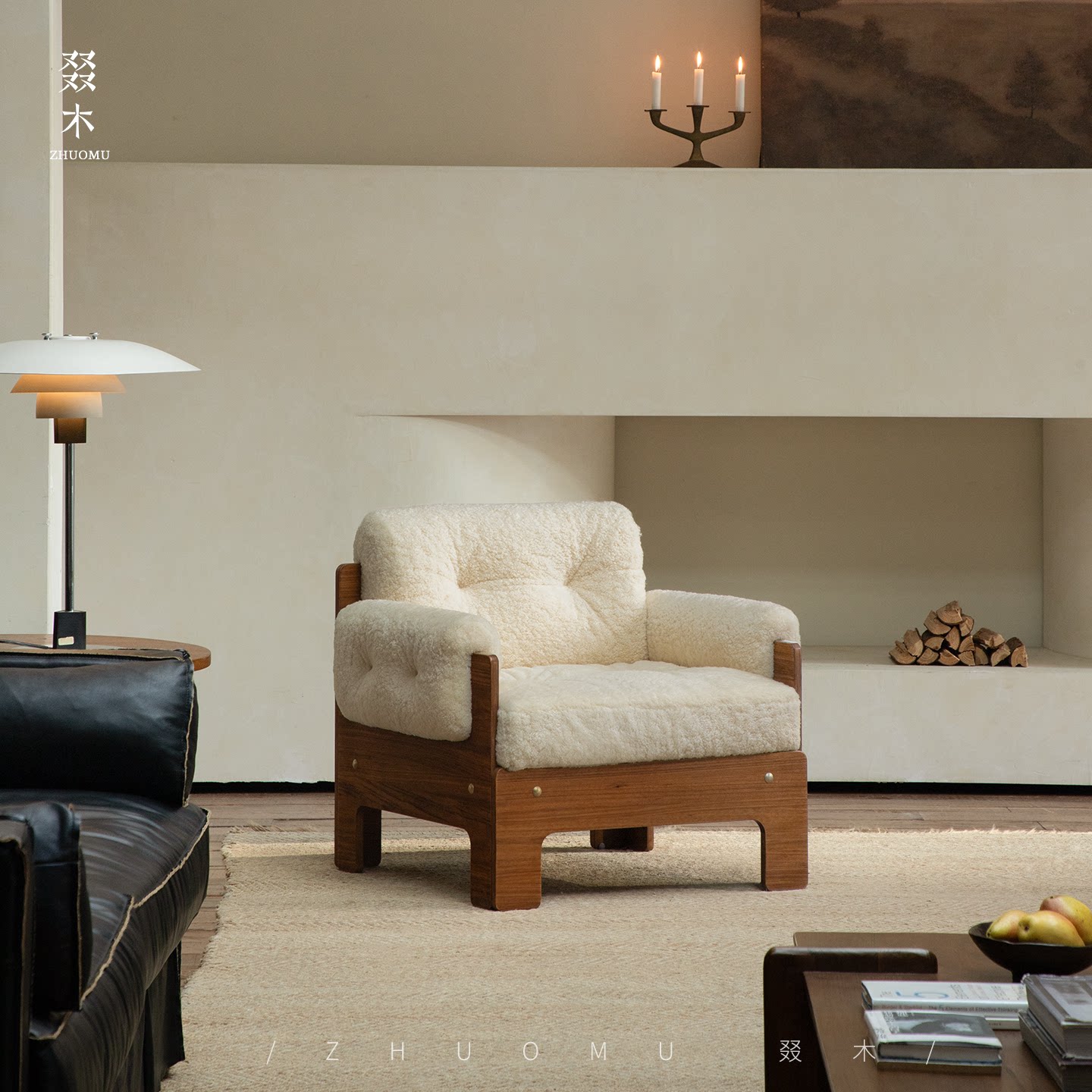 中古复古风羊羔毛客厅单人沙发酒店民宿设计师阳台休闲椅 叕木法式