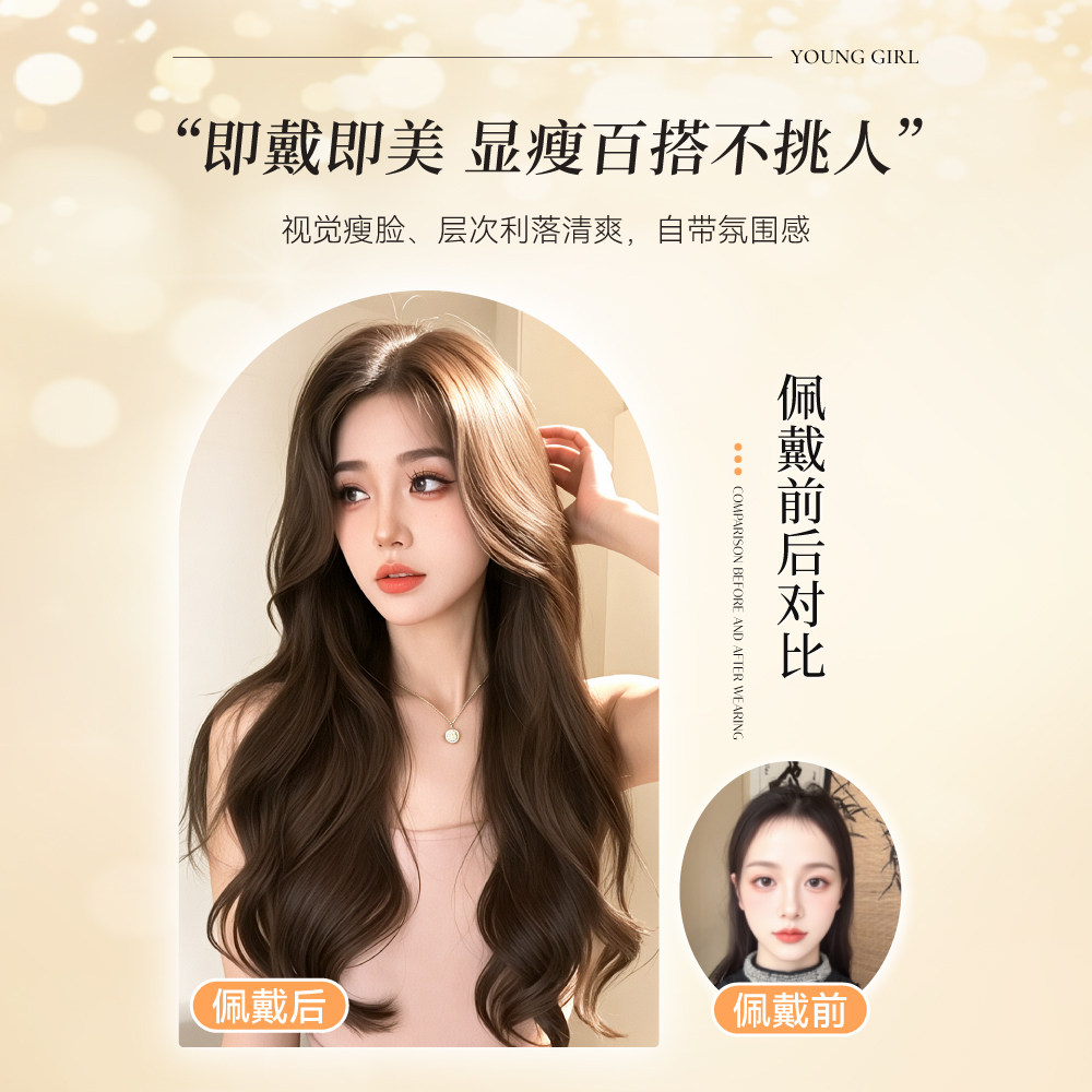 为您提供商品长卷发大波浪日常整顶假发套 假发全头套女真人发丝自然中分时尚的详细介绍,